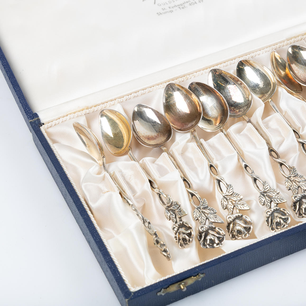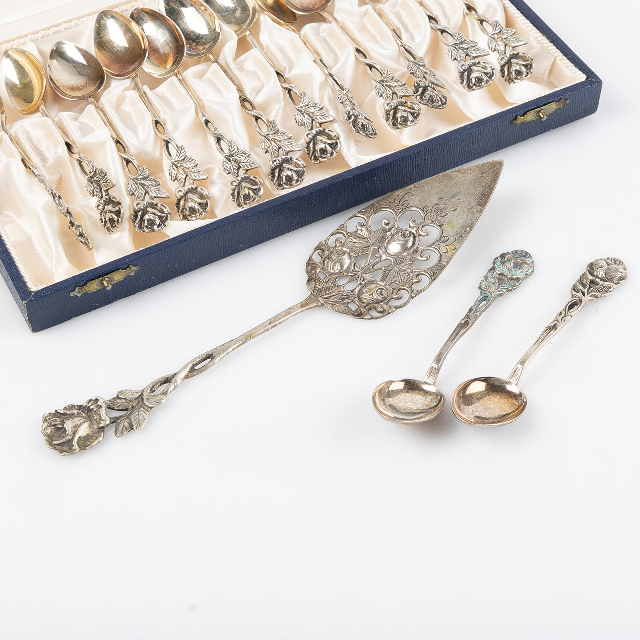 SPOONS AND CAKE SPADE, silver, “Rosen”.