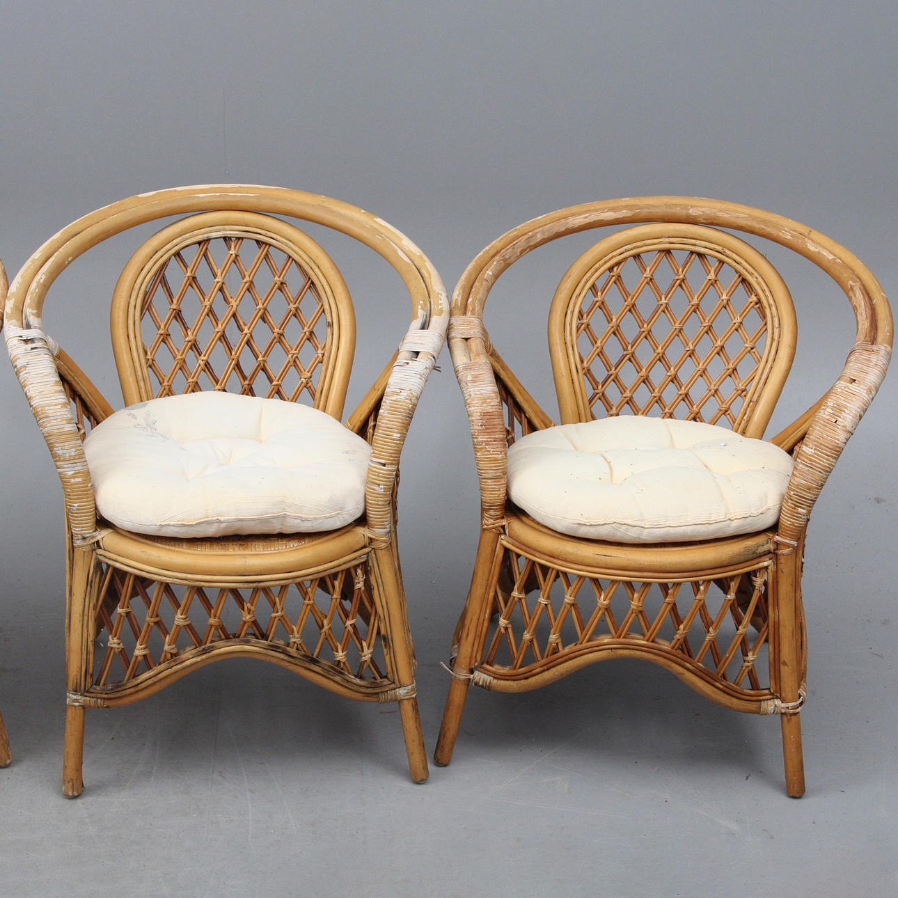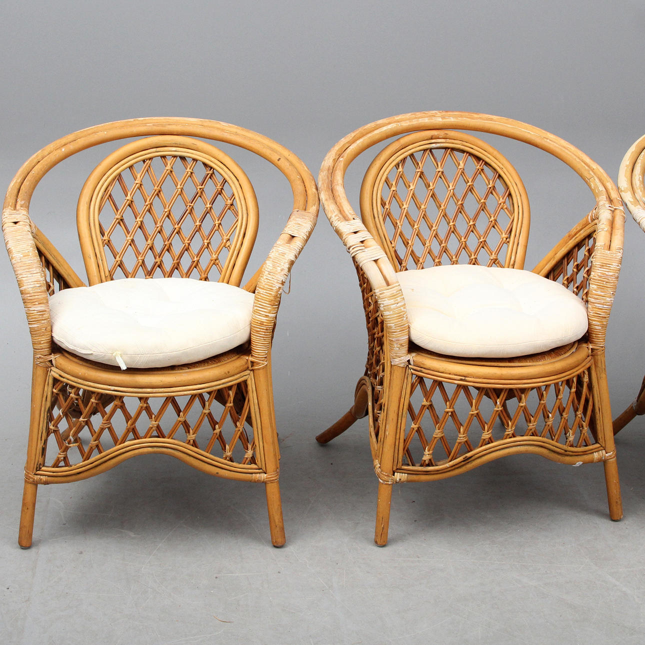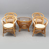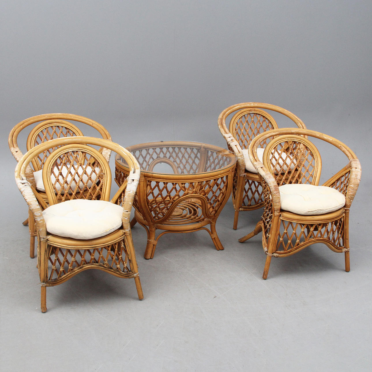 armchairs 4 pcs, table, with glass top.