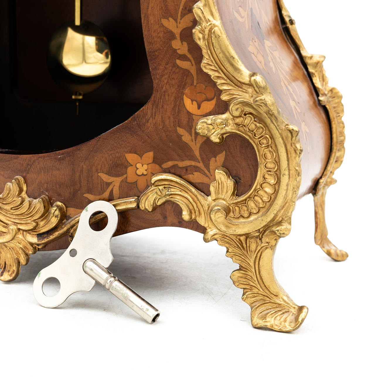 TABLE CLOCK, Rokkoko-style, Brass details, With key.
