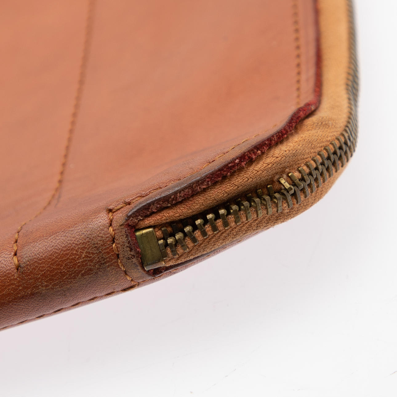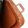 Cognac leather. One zippered inner pocket and one outer pocket. cca 30 x 41 cm.