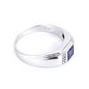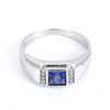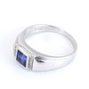 A 9ct white gold ring set with square cut tanzanite (1ct approx.) and diamonds on the sides.