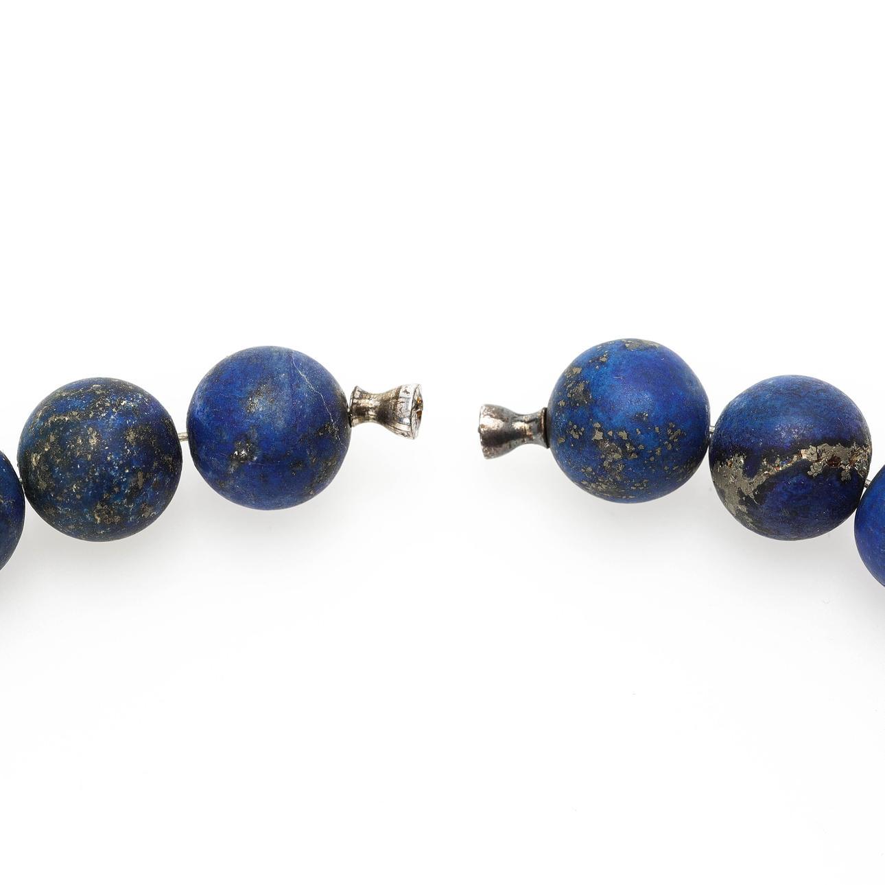 4977018. OLE LYNGGAARD. Necklace, lapis lazuli with dobbar, case.