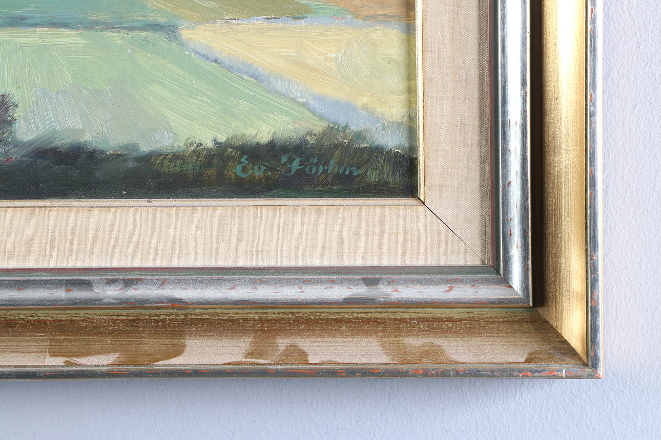 4977068. EVERT FÄRHM. Oil painting on panel. Plain Landscape. Signed.