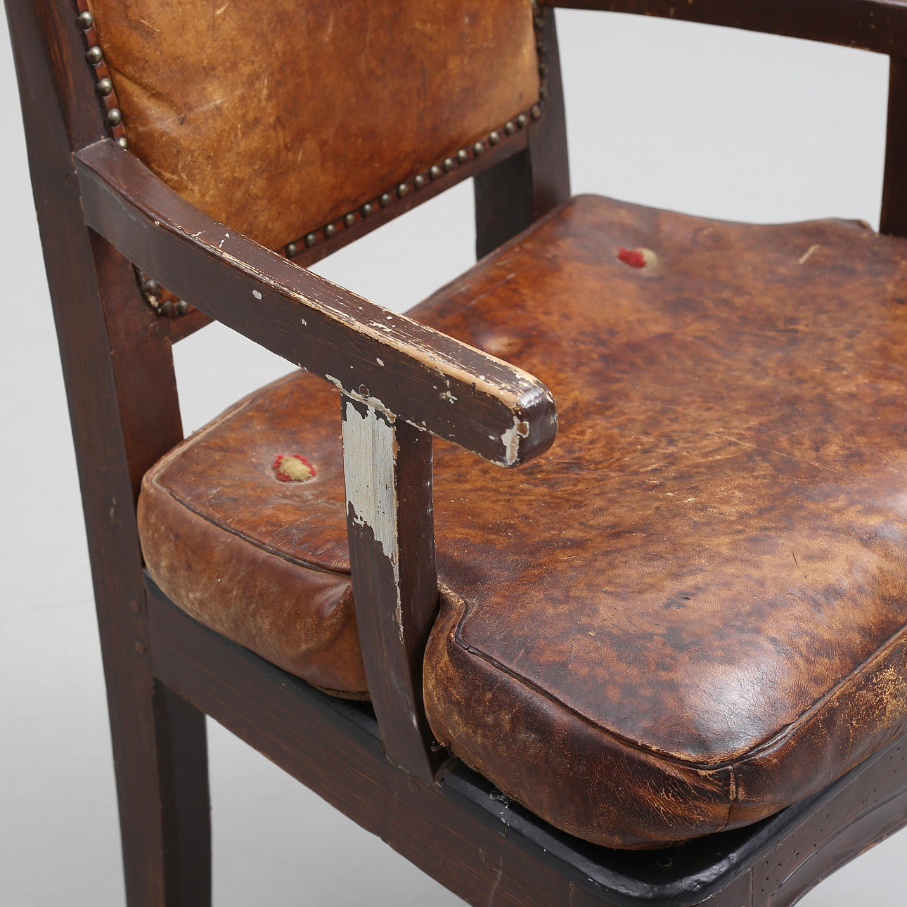 Later cushion and back cover Color loss, wear, scratches Dry padding Normal wear and tear, stains, “textile buttons” missing on leather pad.