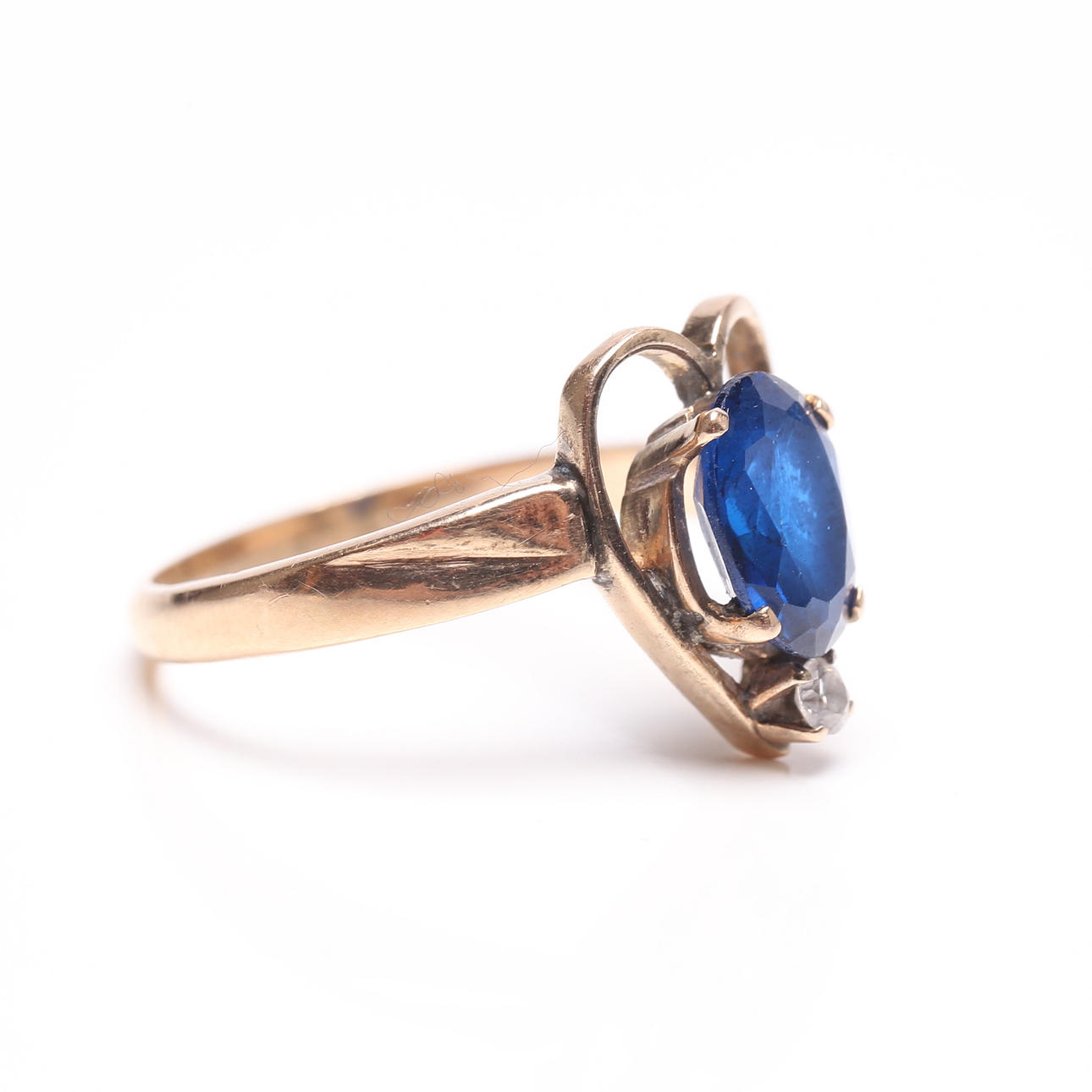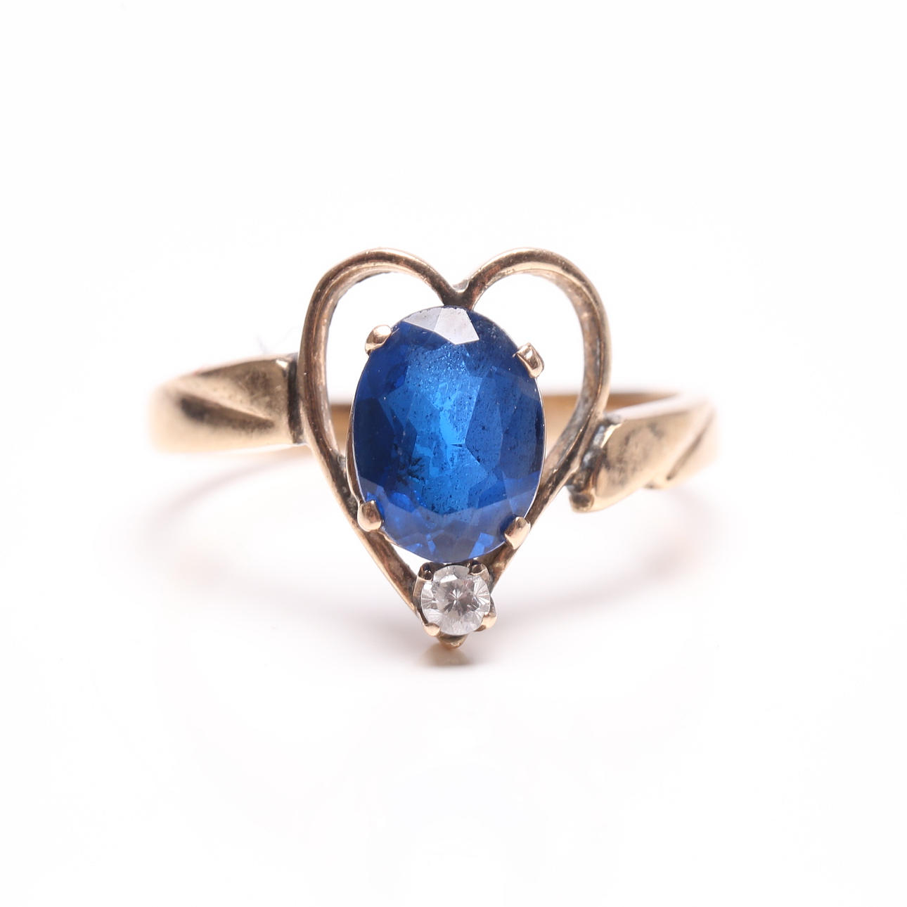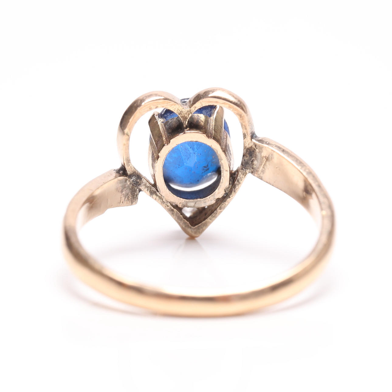 Size approx. 17 Heart shaped with blue stone and smaller white.