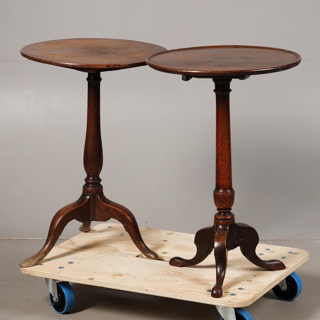Only the taller table has a tilt top, one with a foot missing, normal marks and expected wear.