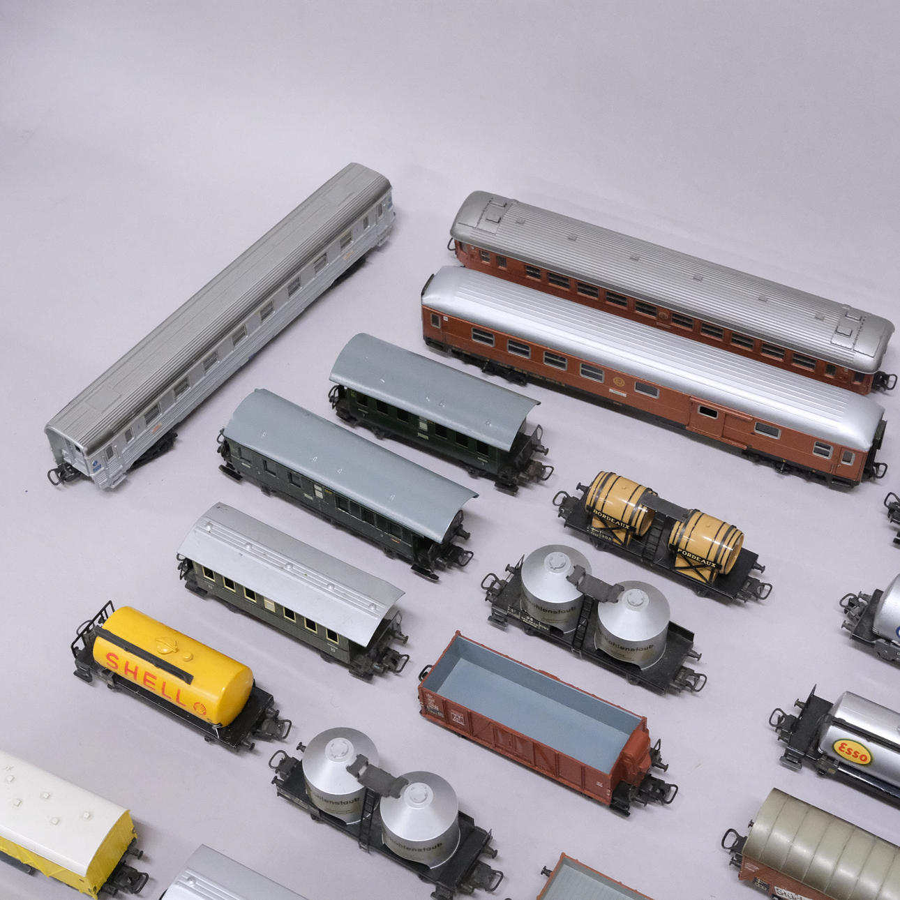For example, passenger wagons, crane wagons, flatbed wagons, freight wagons, tank wagons with Shell advertising, wine wagons with Bordeaux text, etc.