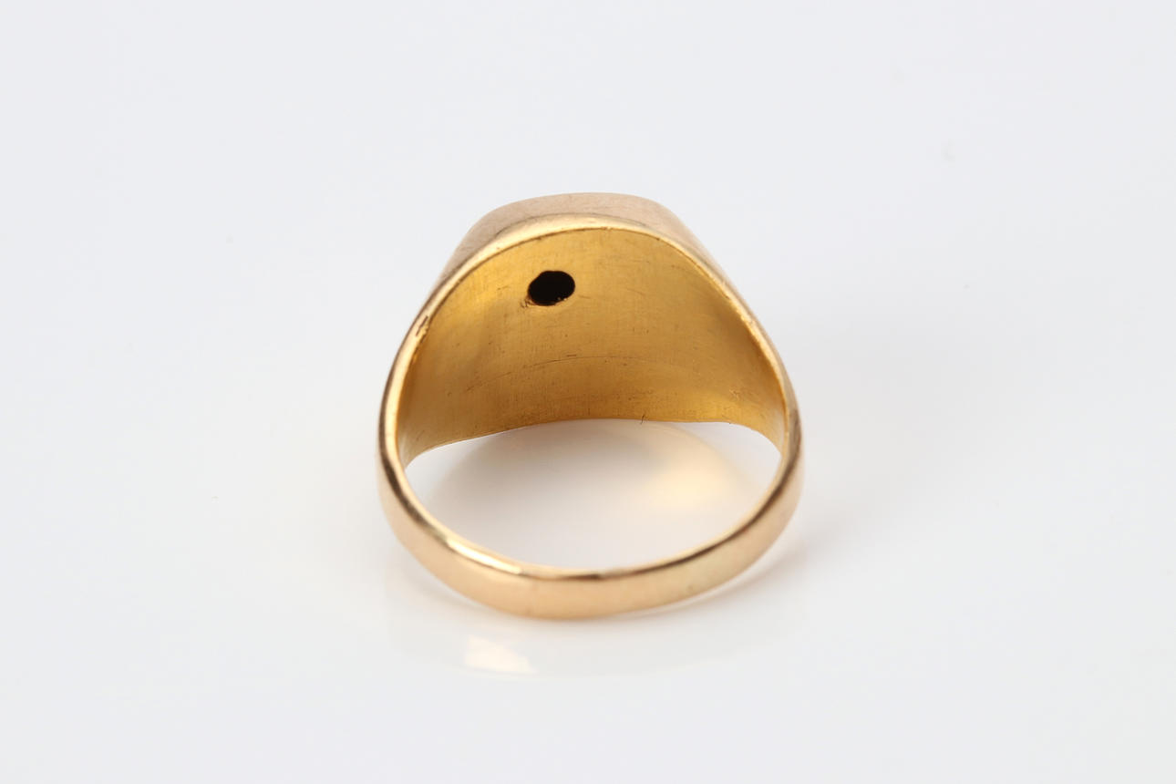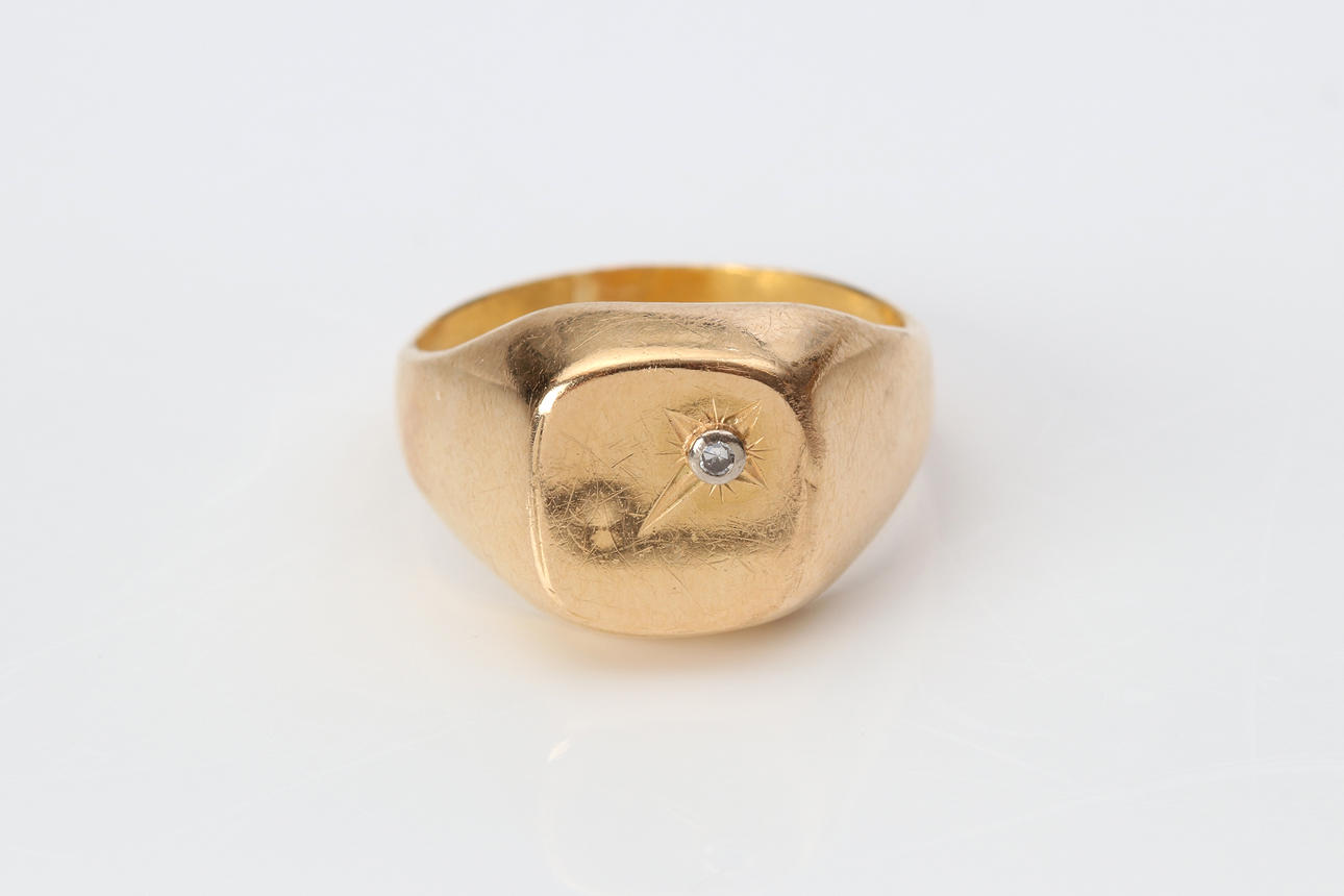 RING WITH SMALL DIAMOND. Gold, total weight approx. 4.5 grams.