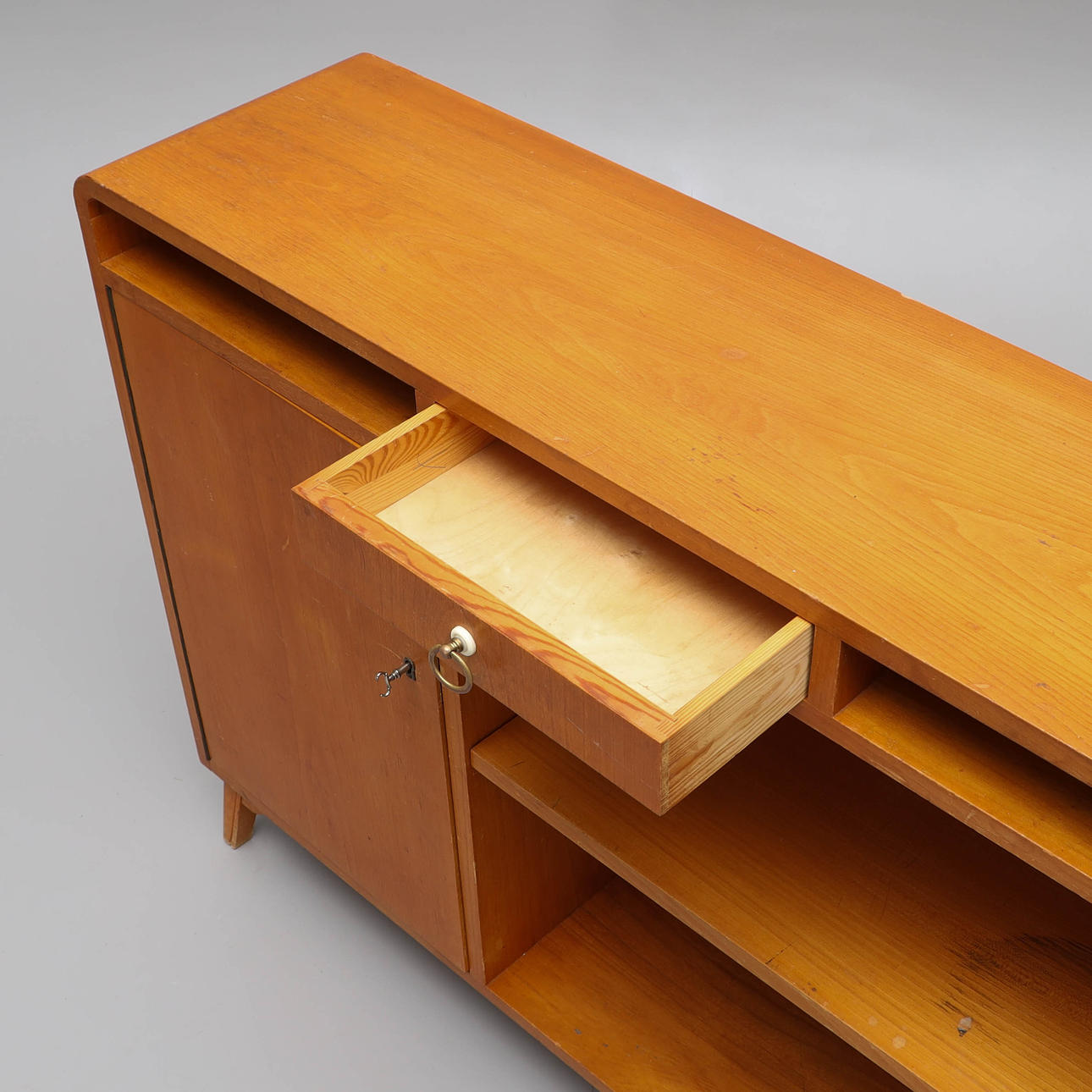 4977676. A 1930's elm veneered sideboard with bookcase.