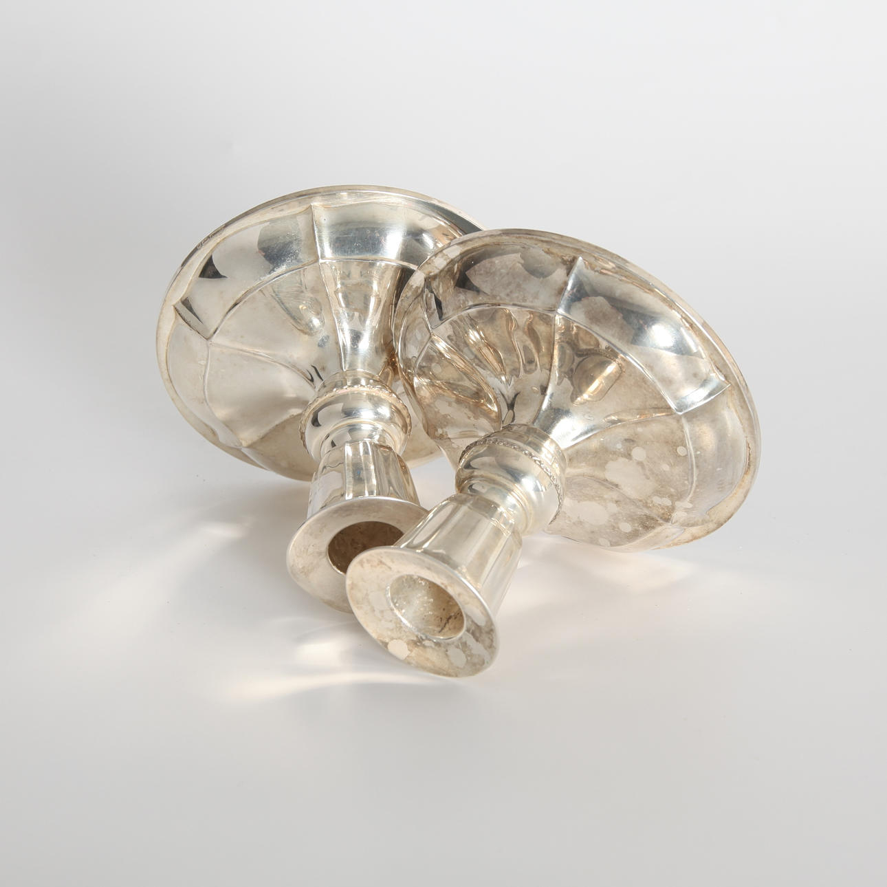 1 pair of silver candlesticks with filled foot