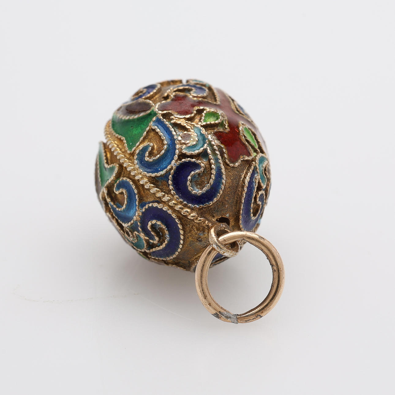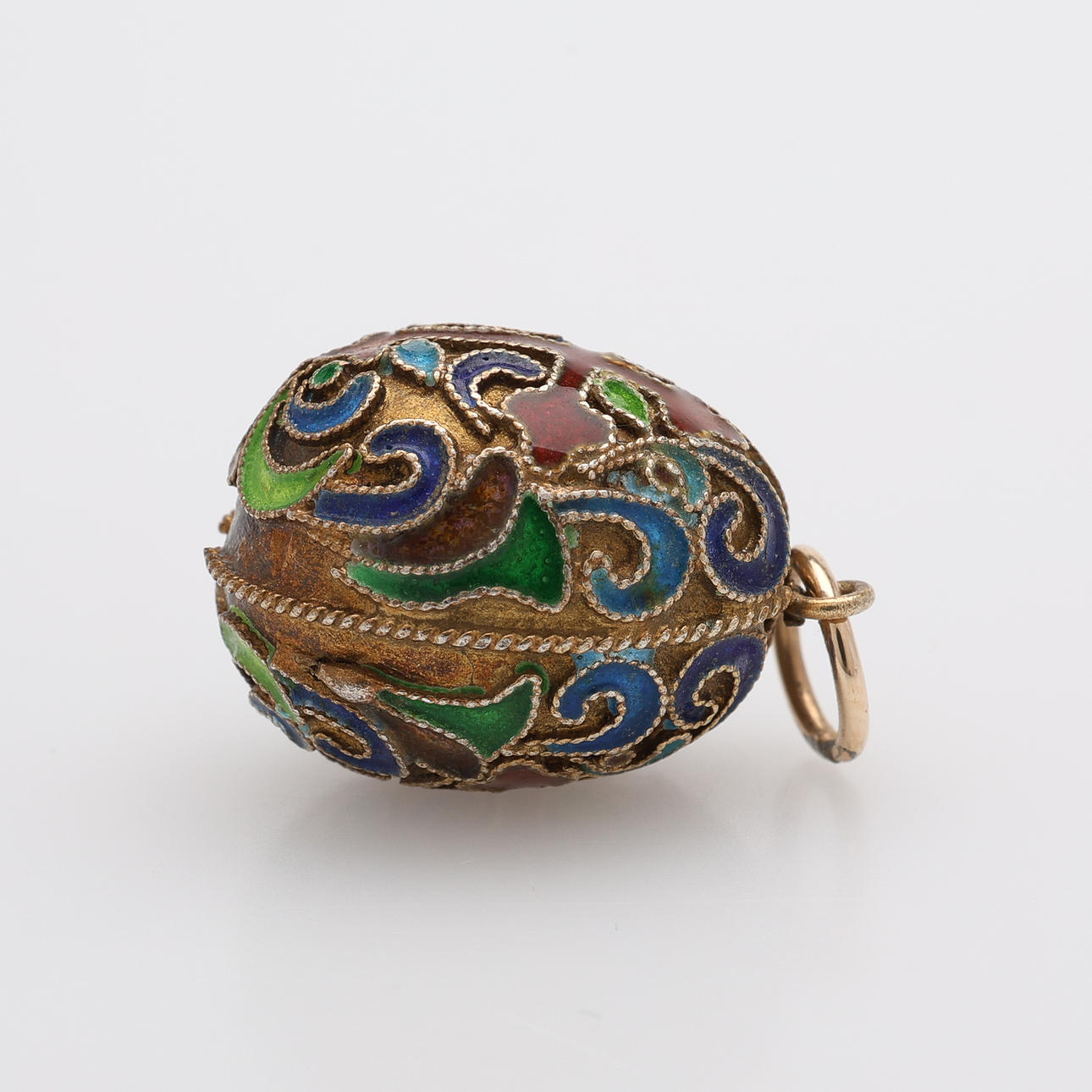 EGG-SHAPED PENDANT, GILT SILVER & ENAMEL, Approx. 4.8 g.
