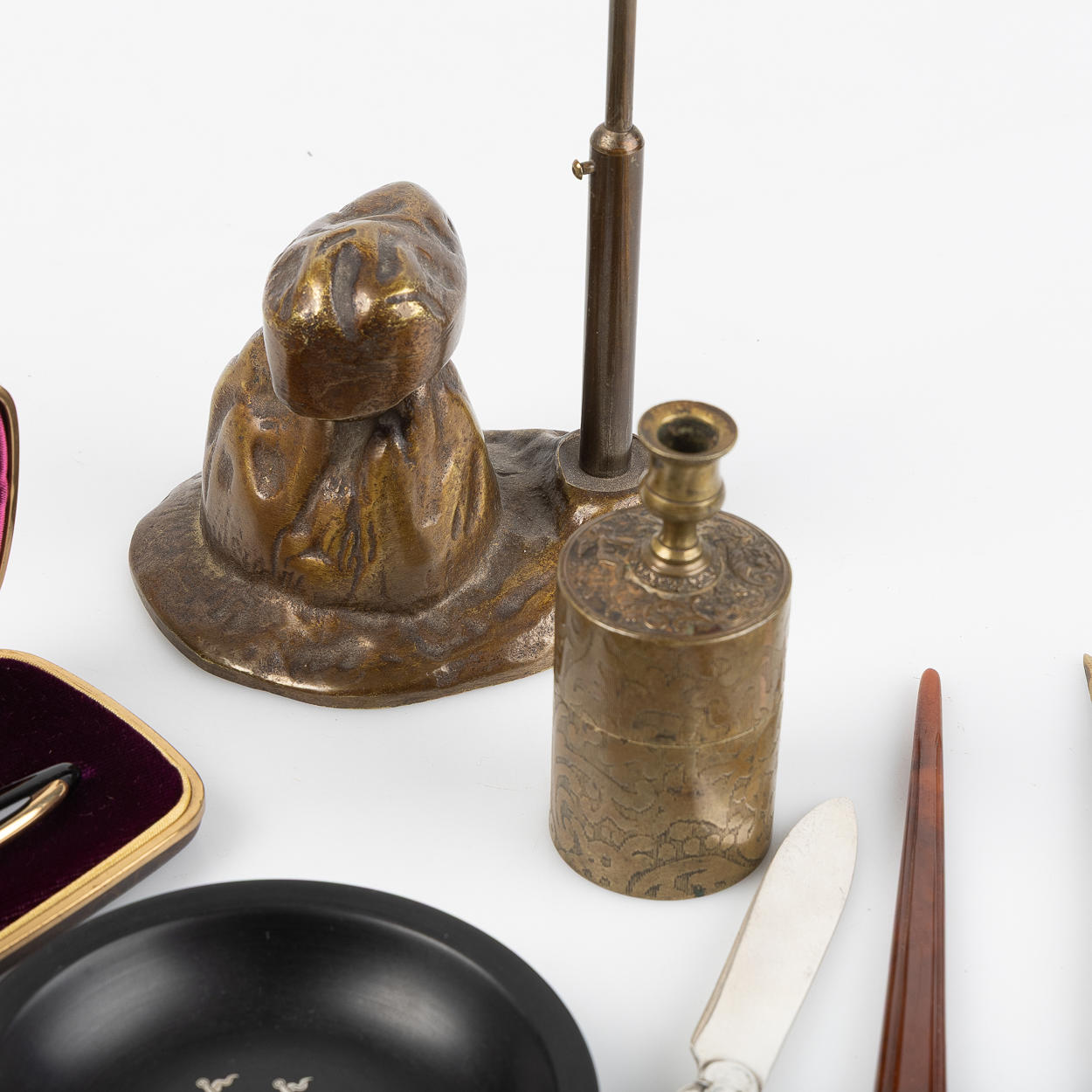 2 stationery knives, largest L approx. 20,5 cm.