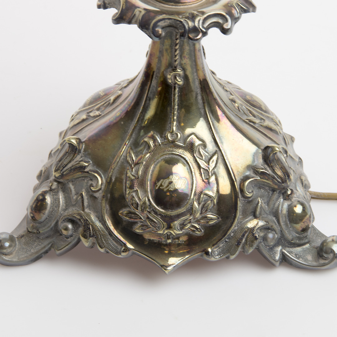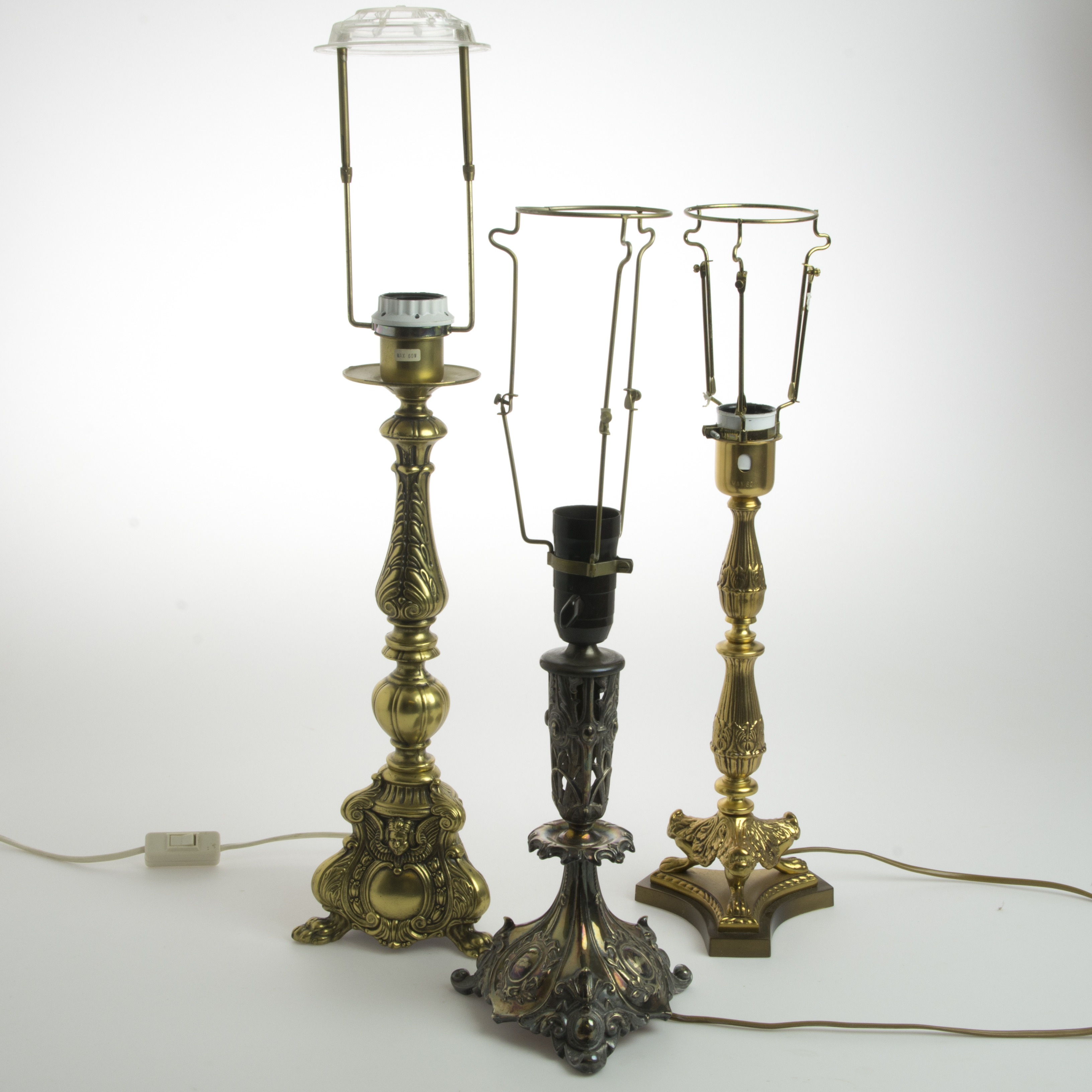 497791. TABLE LAMPS, 3 pieces, brass/ nickel silver.