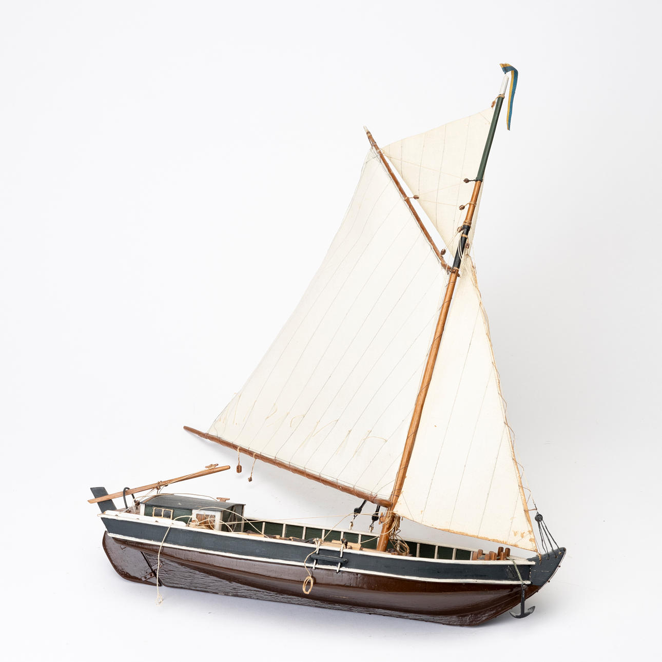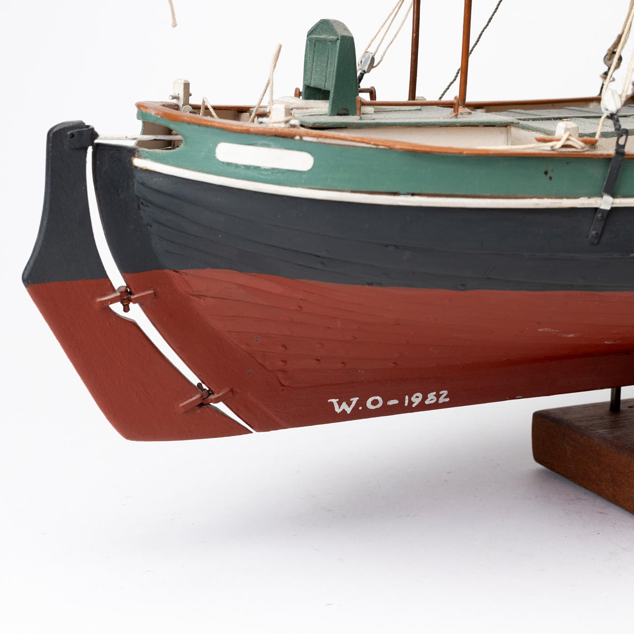 Sailboat, dated 1982, length ca 66, height 67 cm including stand.