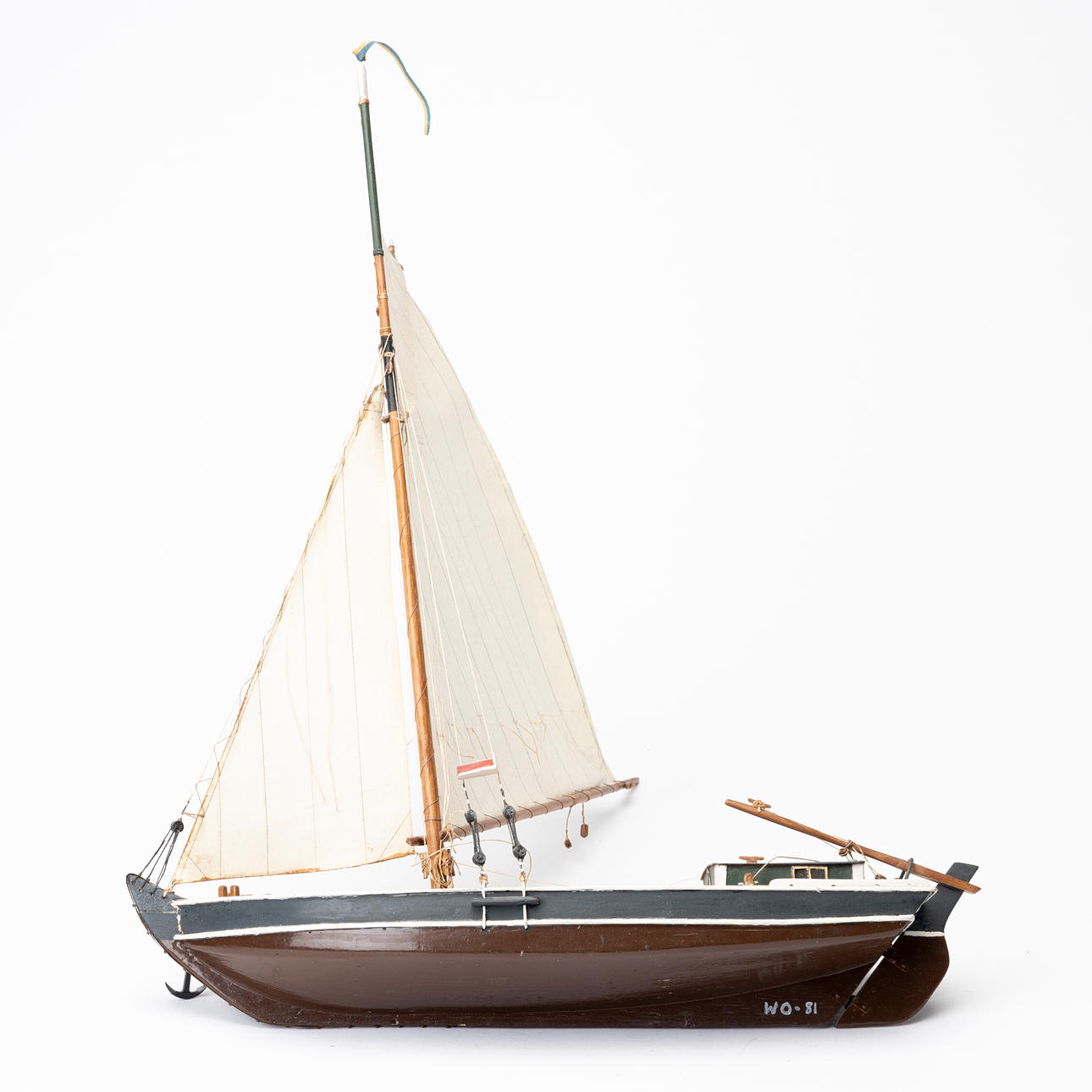4977930. WILHELM OLIVECRONA. 2 boat models, single-masted sailboats, monogram signed and dated 81 and 1982 respectively.
