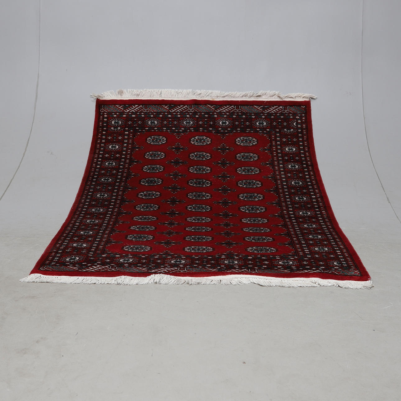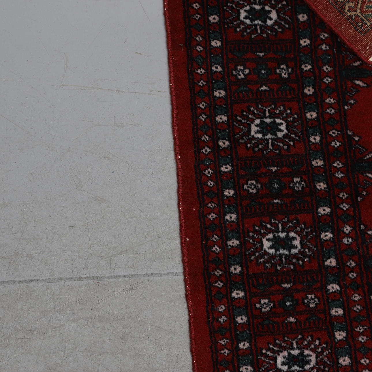 Wool weave on cotton warp. Red bottom color.