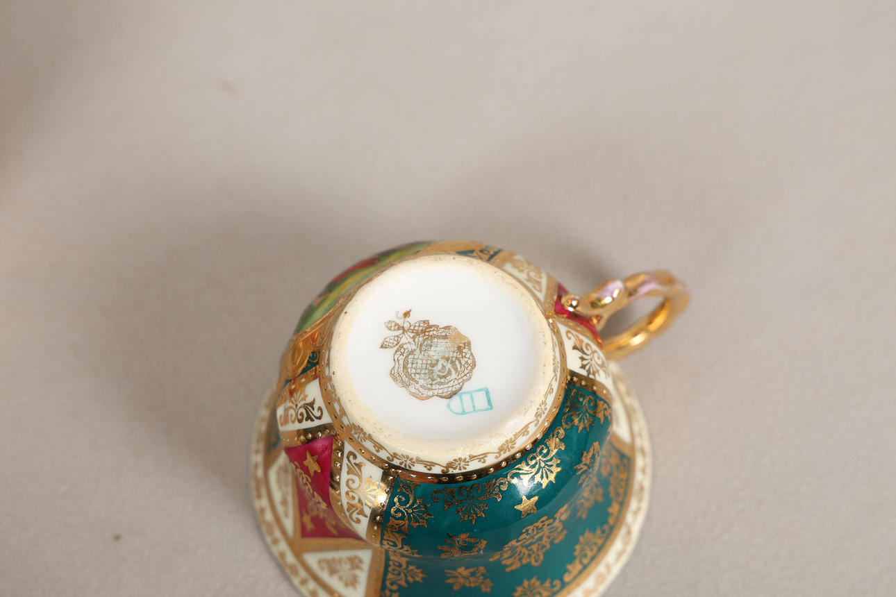 one saucer cracked and repaired, otherwise in good order.