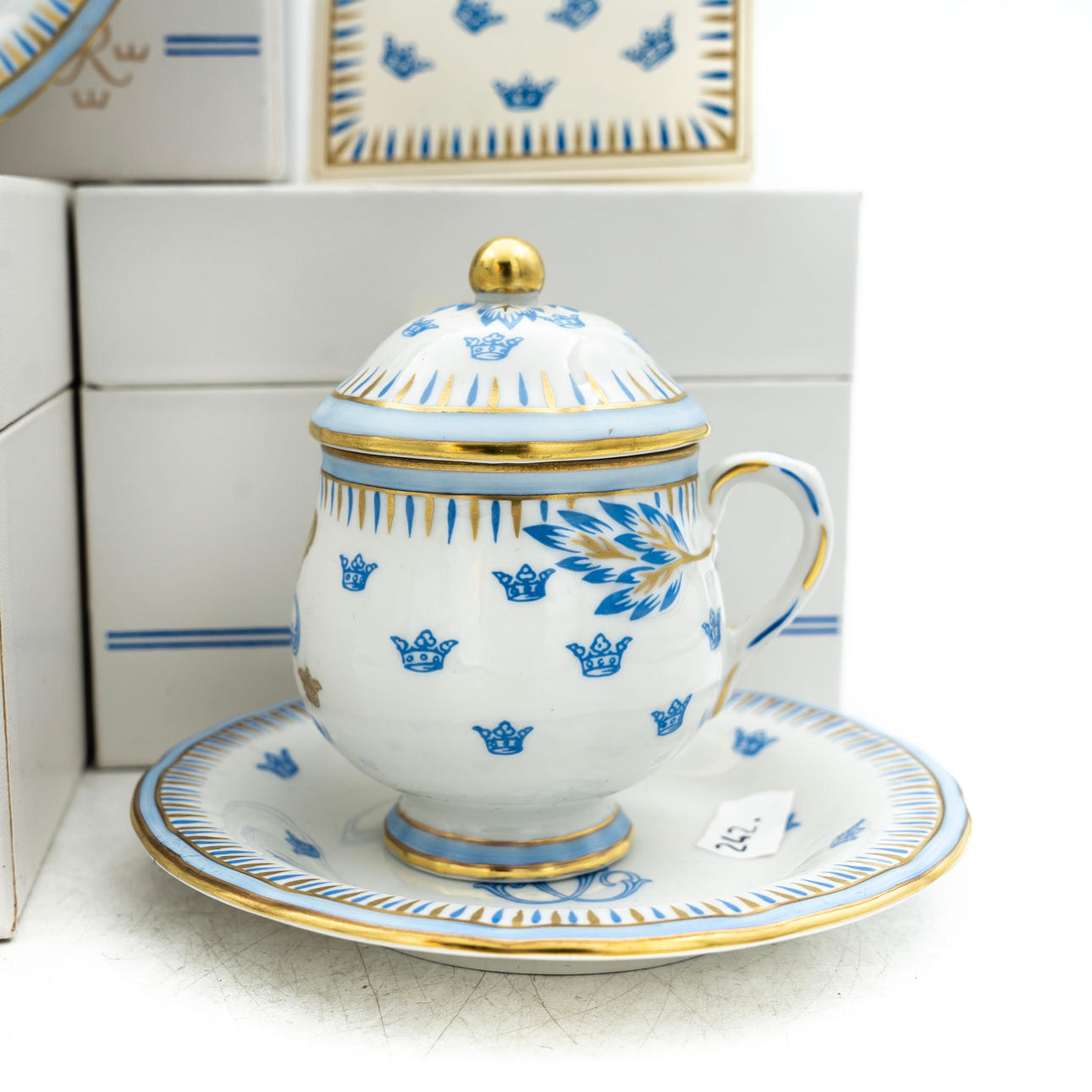 Very popular cups and saucers, in original packaging. No remarks.