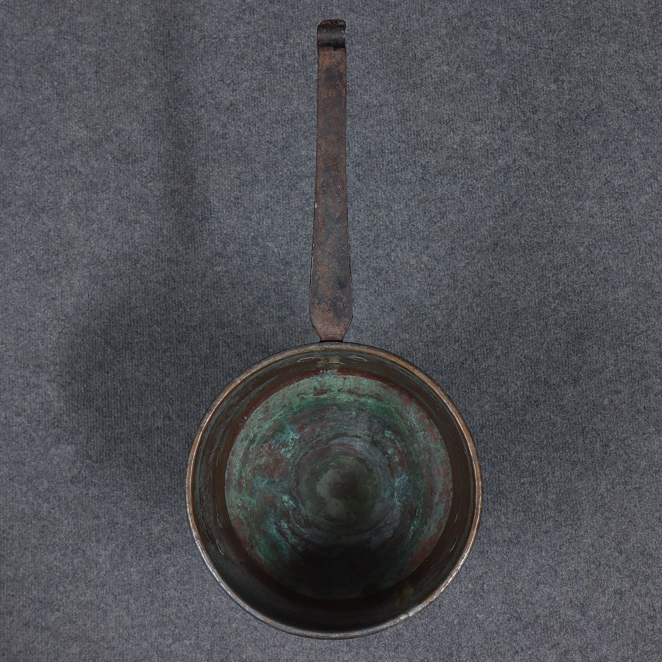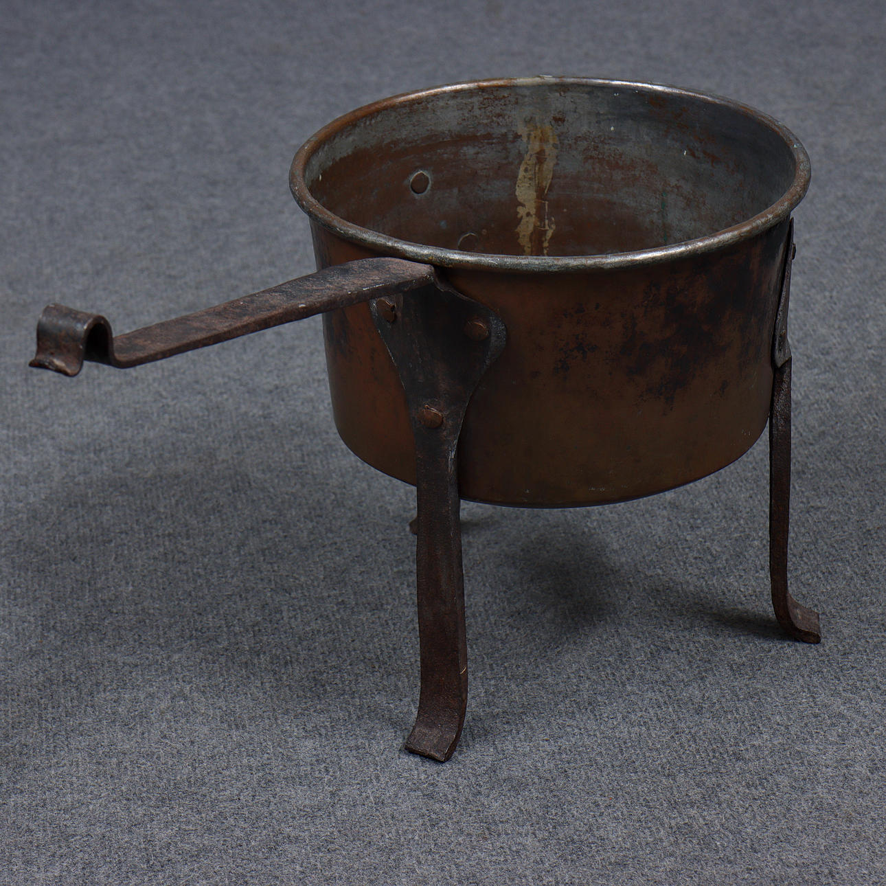 4978348. LARGE THREE-LEGGED COPPER CASSEROLE.