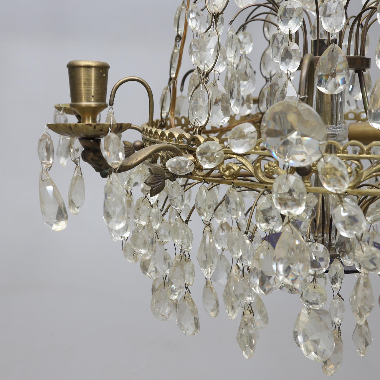 Usage and age-related wear. Single prisms may be missing. A candle holder is missing. No functional warranty is provided.