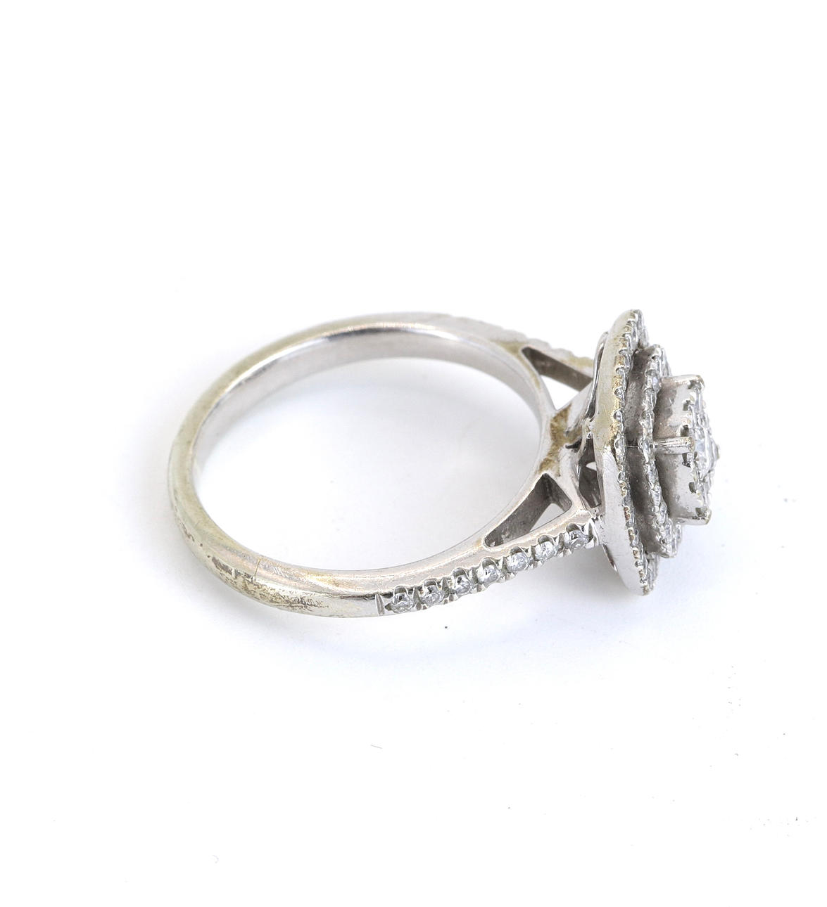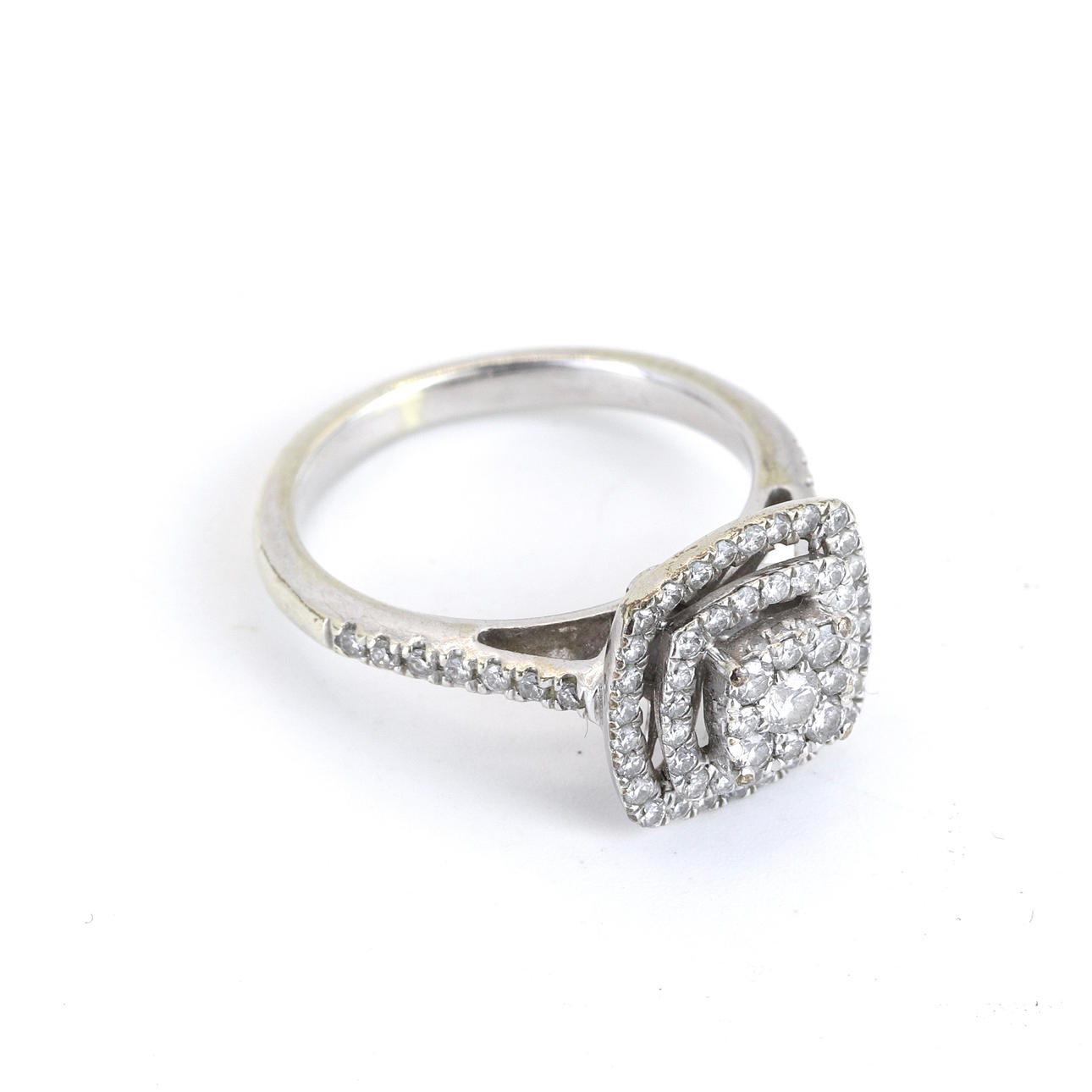 A 9ct white gold diamond set cluster ring.