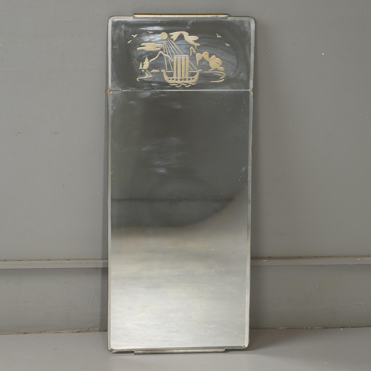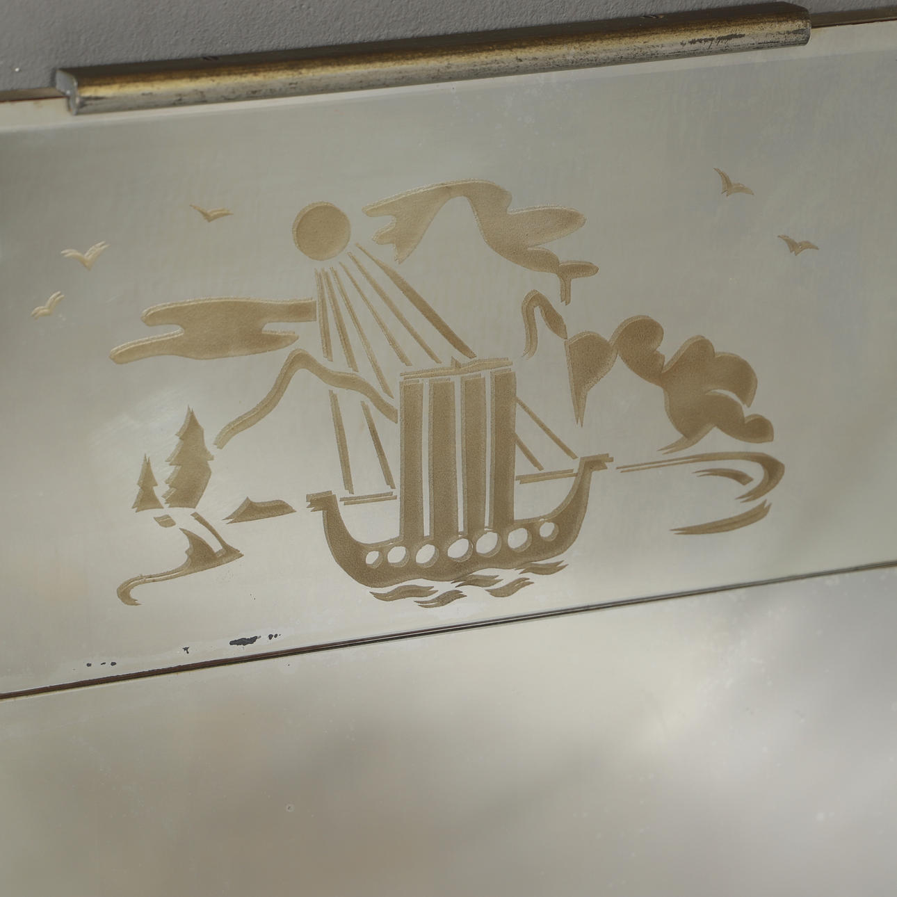 A mirror, etched glass, 1930s/40s.