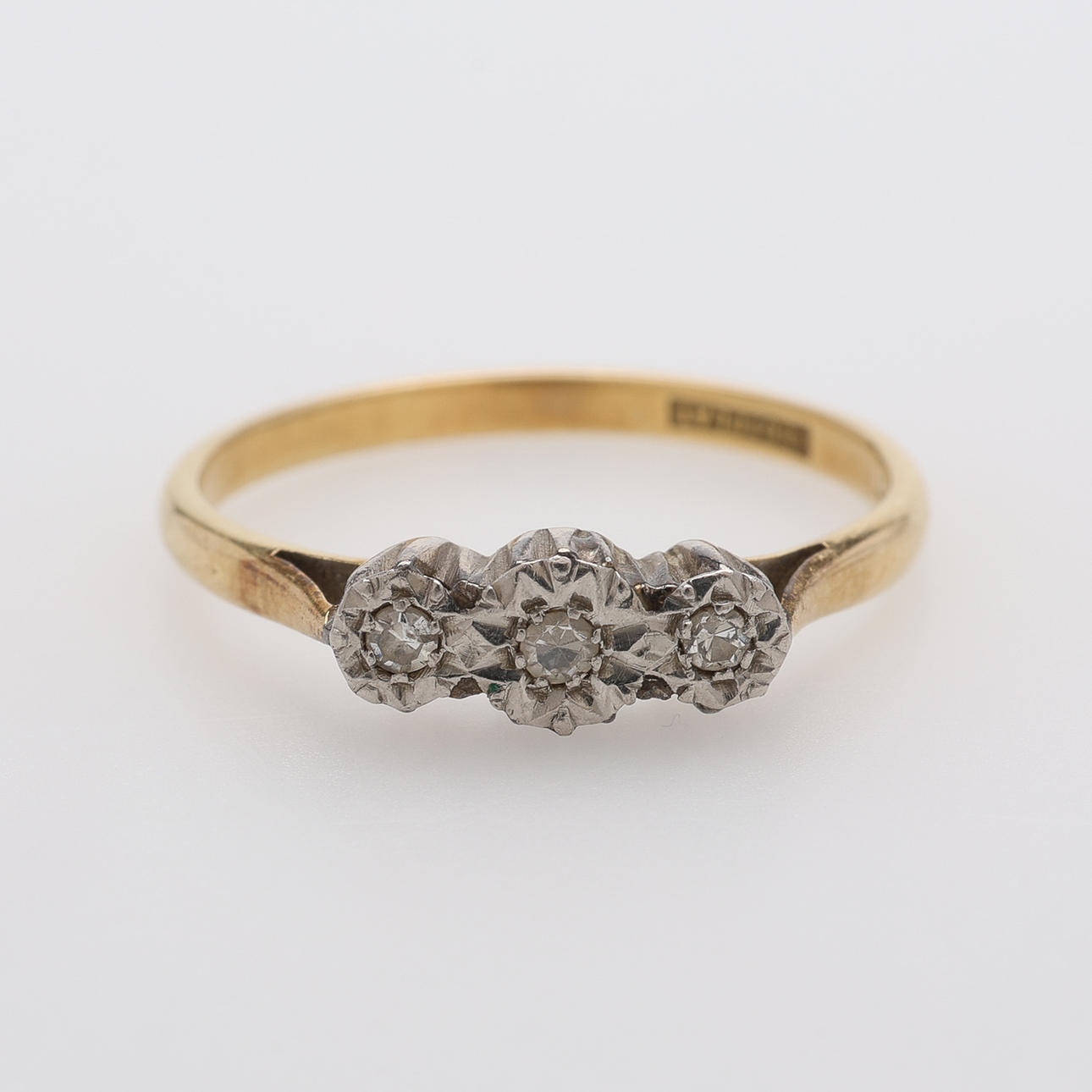 4978727. RING, 18K GOLD, PLATINUM & SMALL DIAMONDS, TOTAL Approx. 2.5 g.