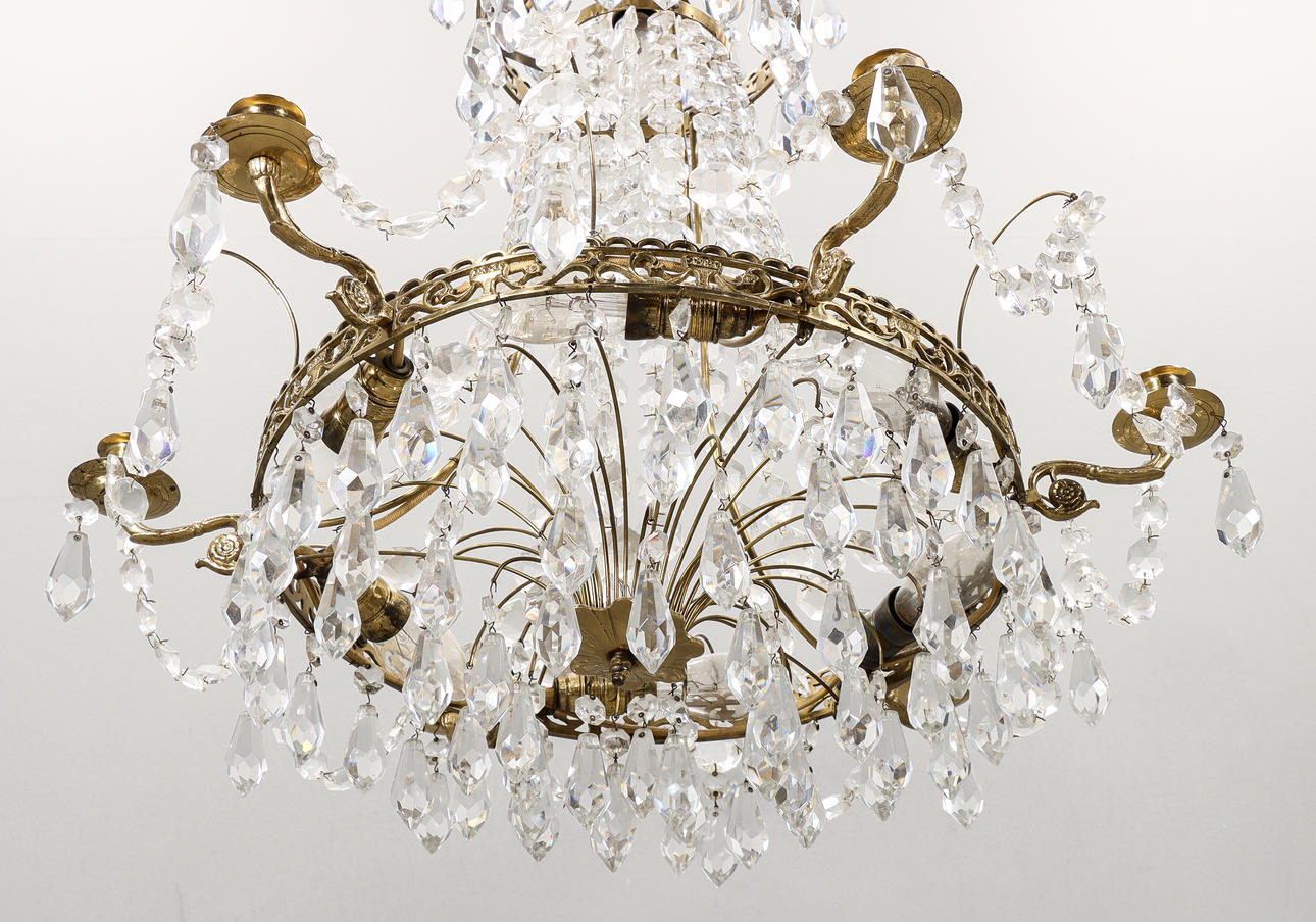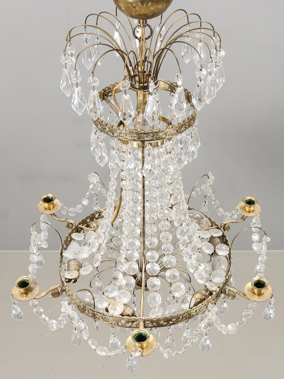 4978761. CRYSTAL CHANDELIER 6 light arms.