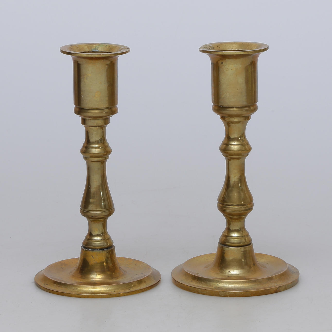4978807. CANDLESTICKS AND CAPTAIN'S CANDLESTICK, 7 PIECES, BRASS.