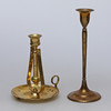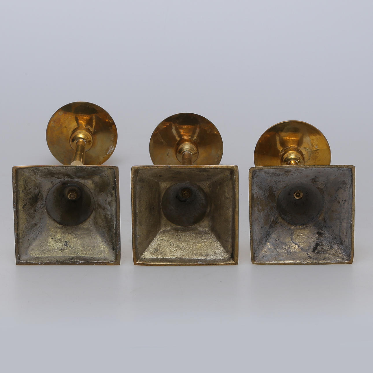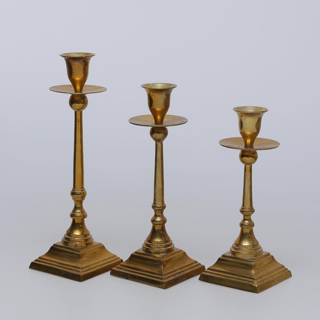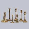 CANDLESTICKS AND CAPTAIN'S CANDLESTICK, 7 PIECES, BRASS.