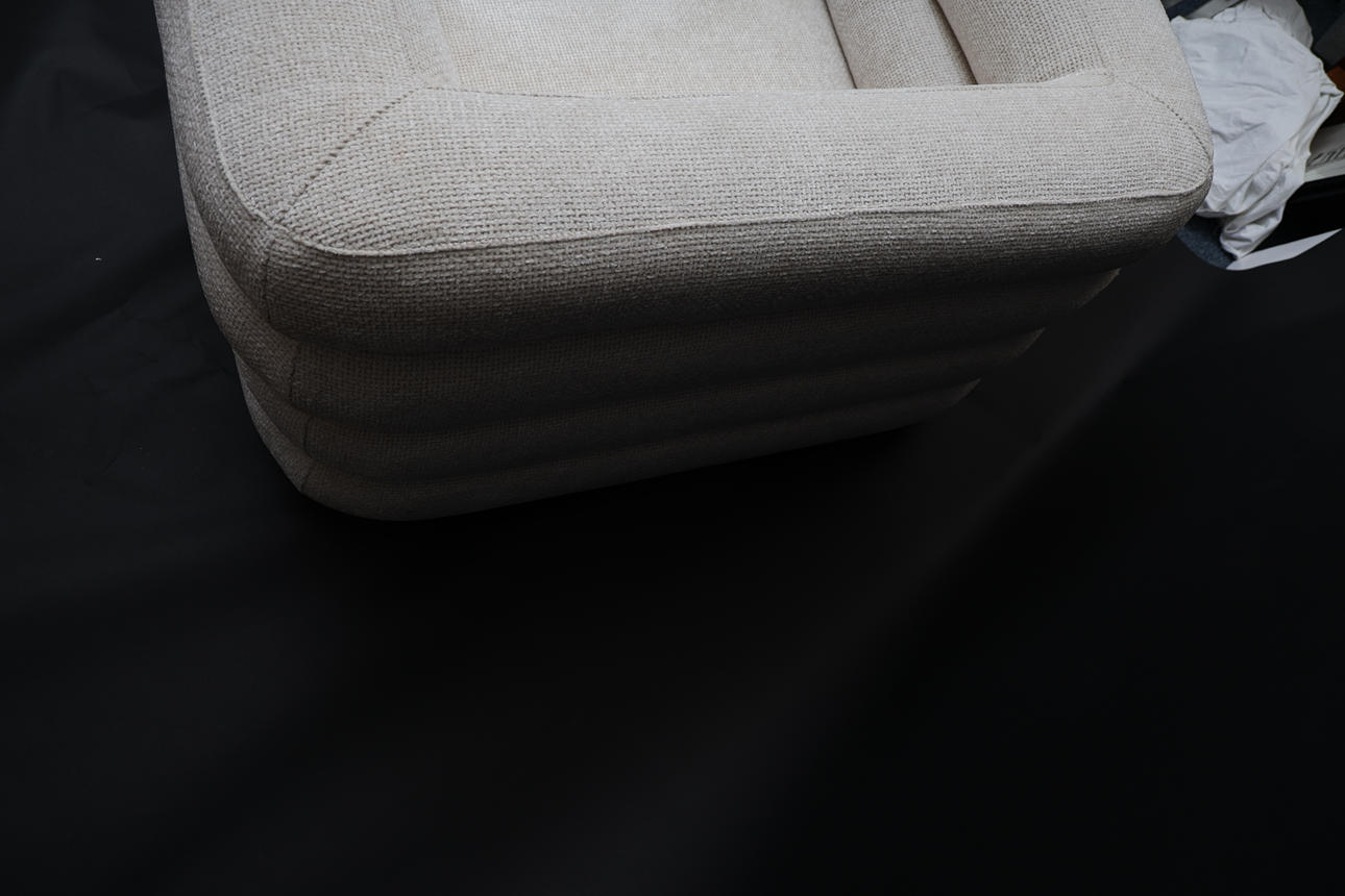 Textile upholstery. Stained legs. Labeled.