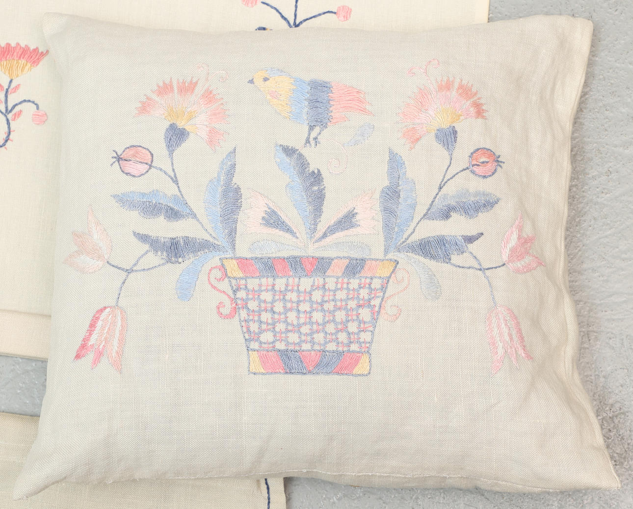 2 pcs tablecloths, “Carnation wreath”, approx. 41x40 cm and smaller.