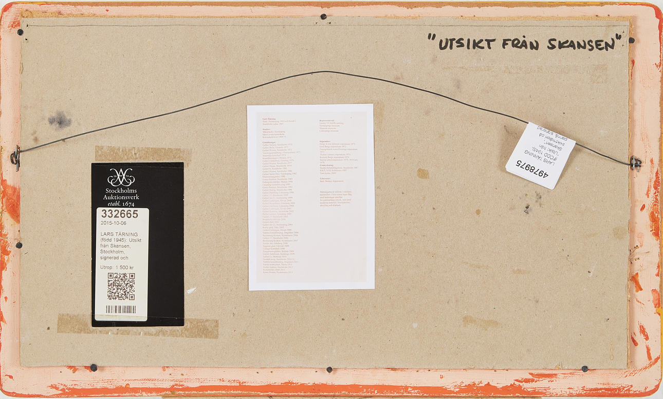 4978975. LARS TÄRNING (FÖDD 1945). “View from Skansen”, layer painting on panel, signed and dated -82.