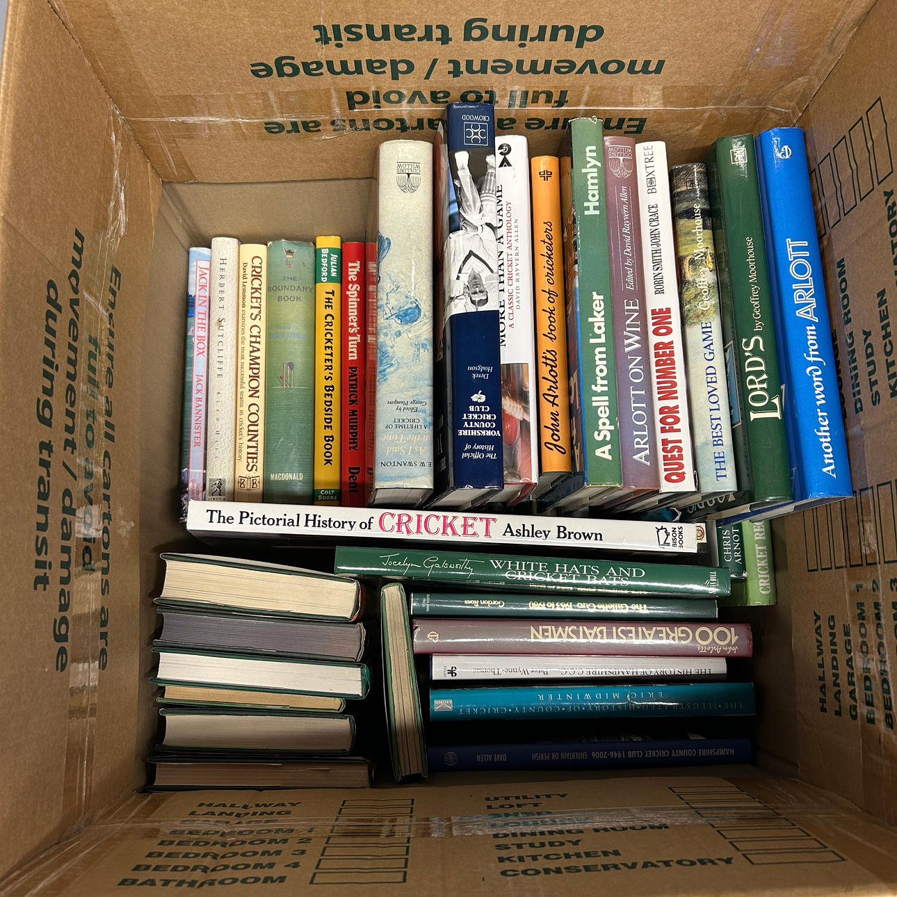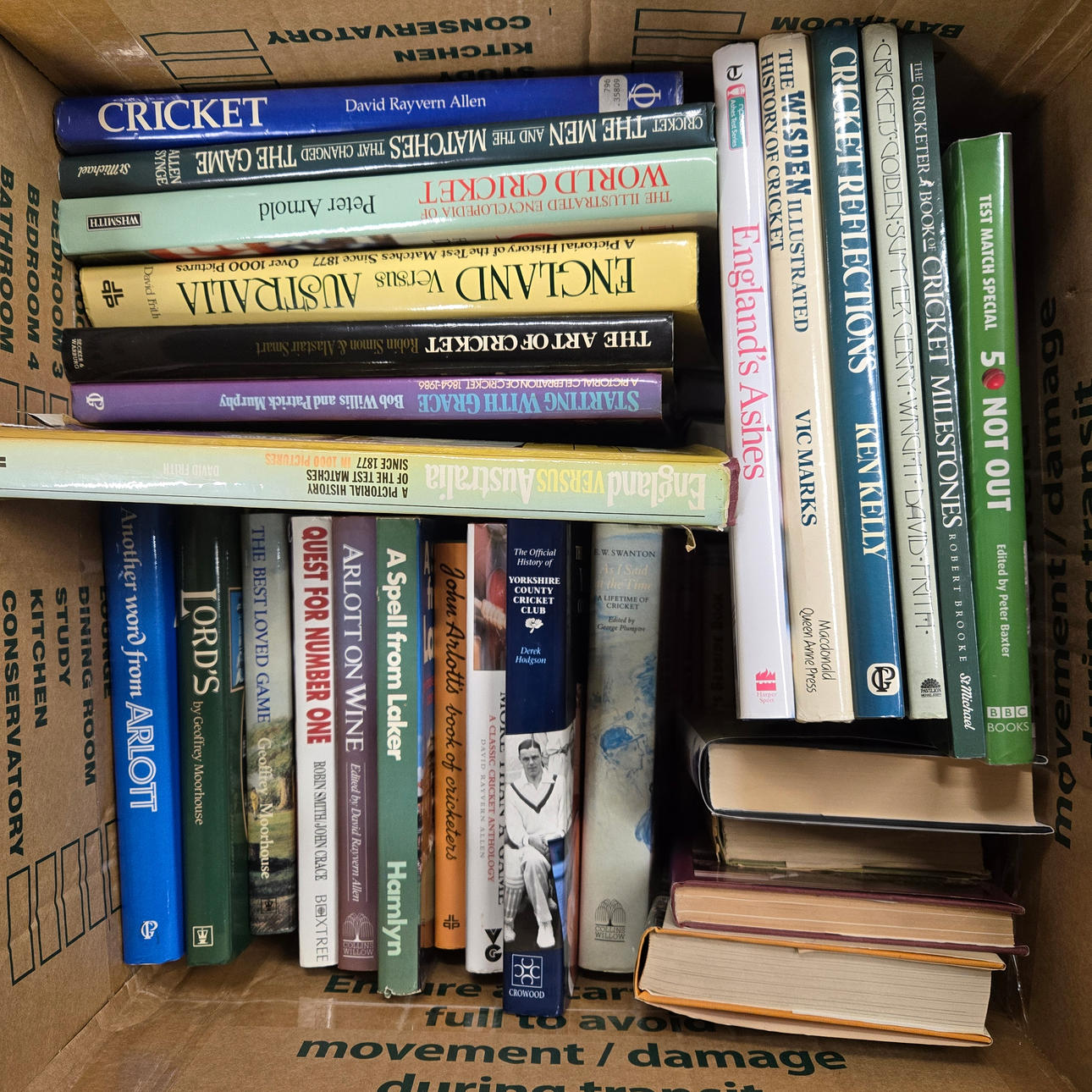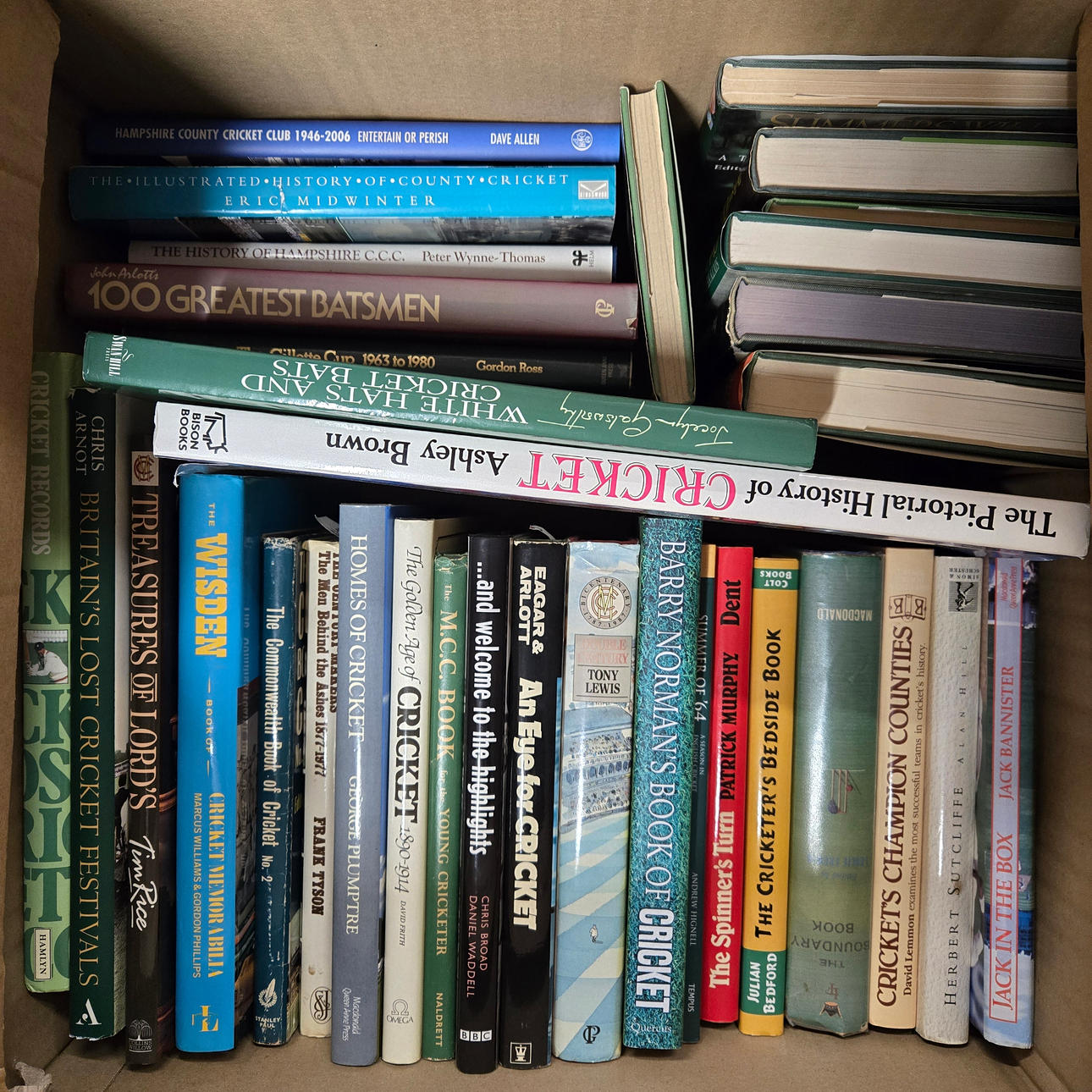 A box of hardback cricket books 49 x 46 x 46cm.