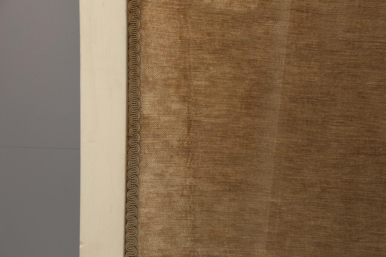 Having cresting top rail and upholstery panel, 154cm wide, 143.5cm high.