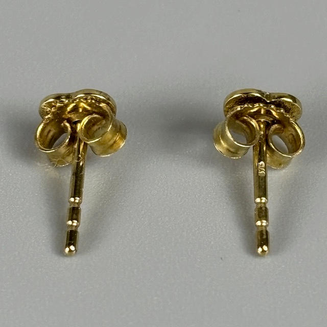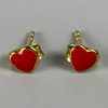 Pair of 9ct Gold Heart shaped earrings red heart centres each approx 4mm across.