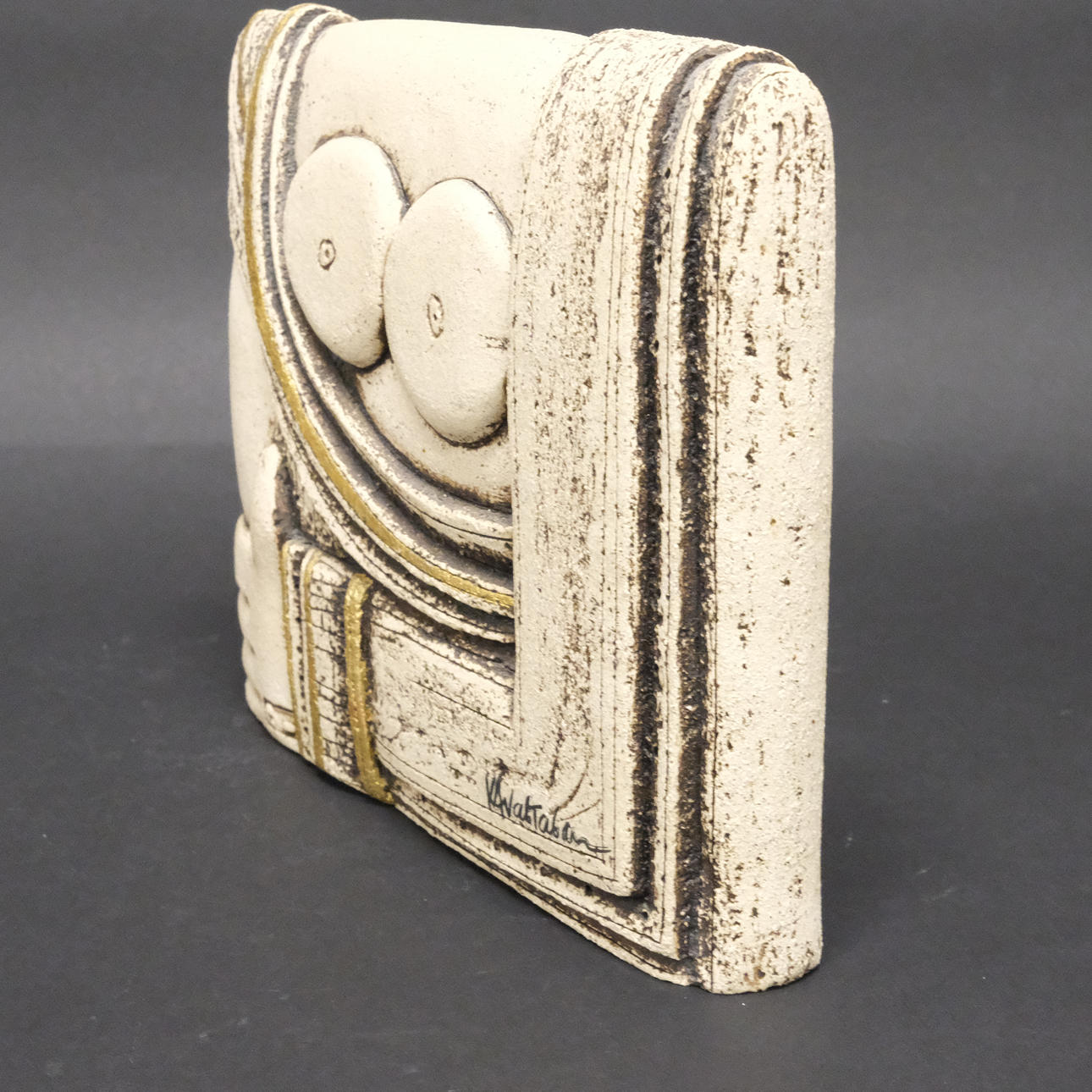 Female figure, possibly Greece, signed, measures 22 x 18 cm.