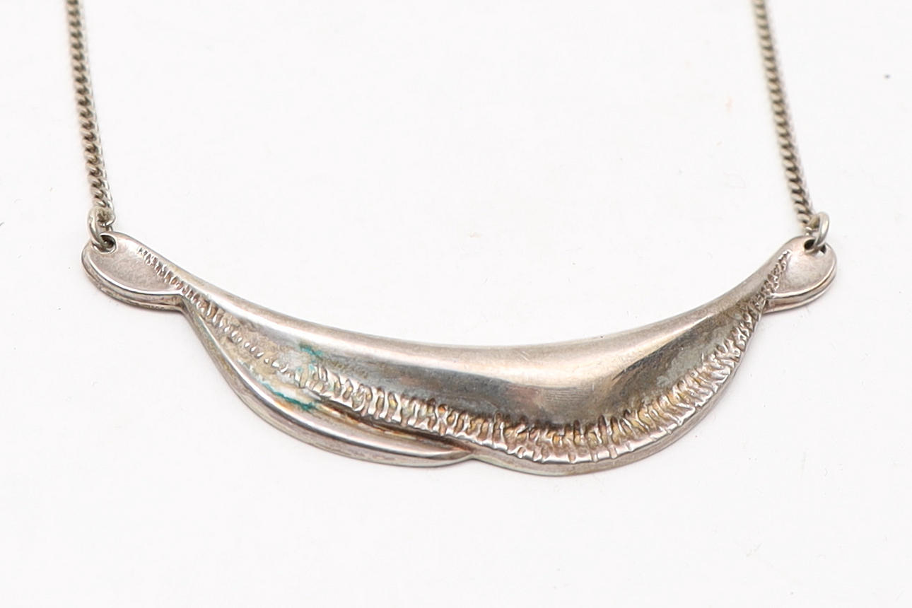 NECKLACE WITH PENDANT, silver, stamped.
