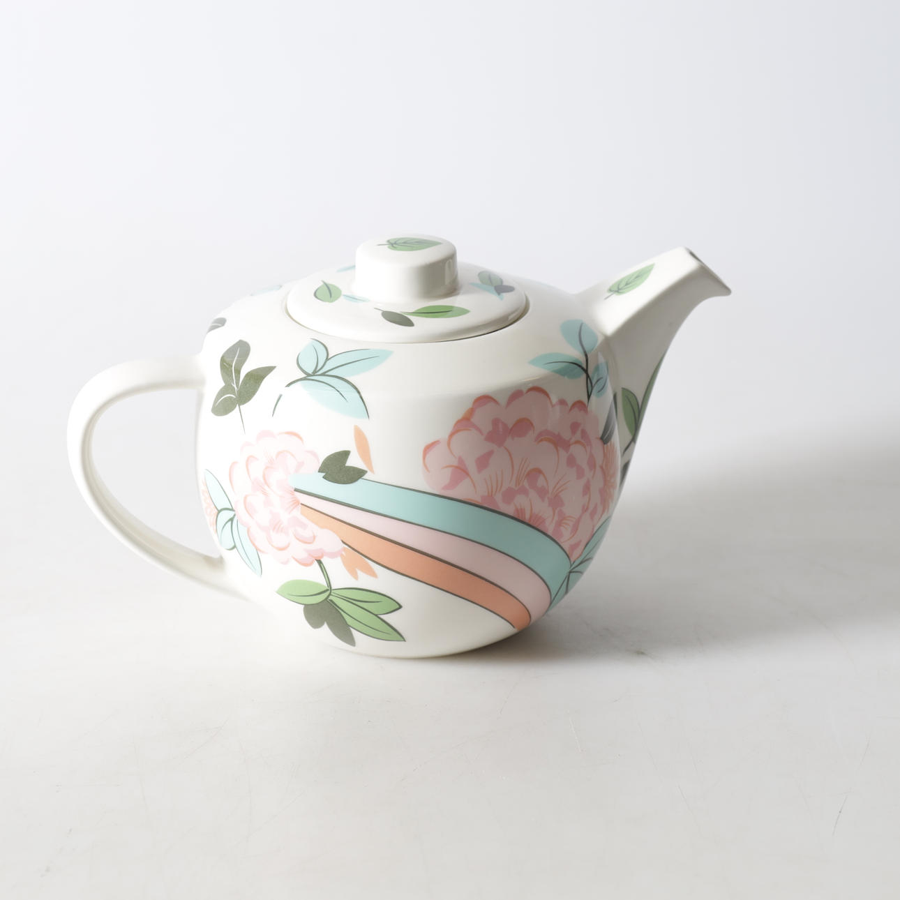 5 teacups with saucer, height approx. 6 cm 2 teacups, diameter approx. 10 cm, 1 teapot with lid, height approx. 13,5 cm.