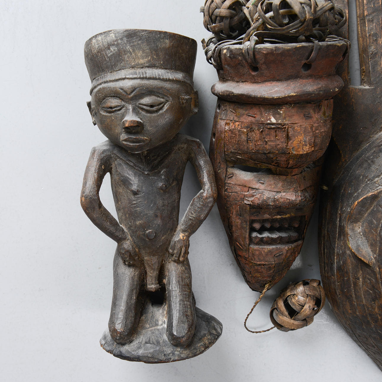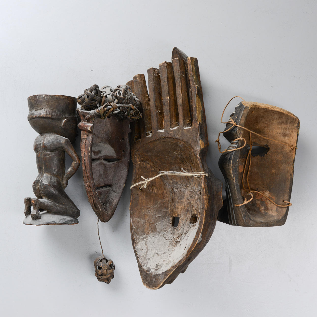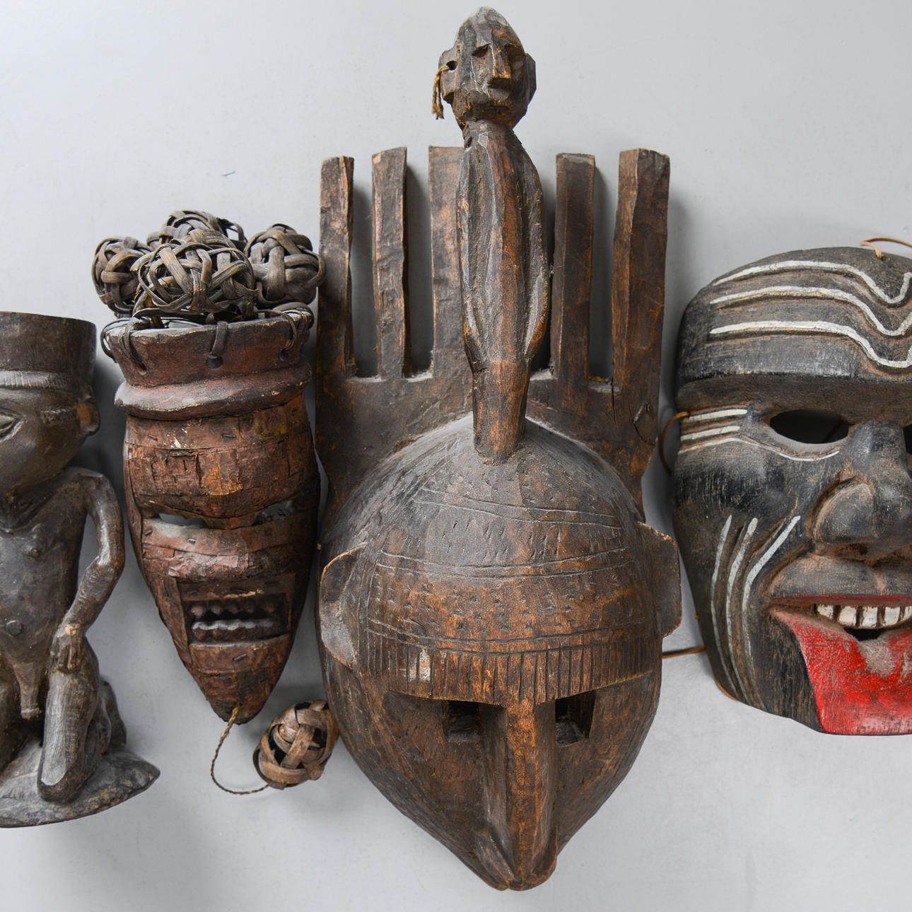 FOUR MASKS & SCULPTURES, Africa.