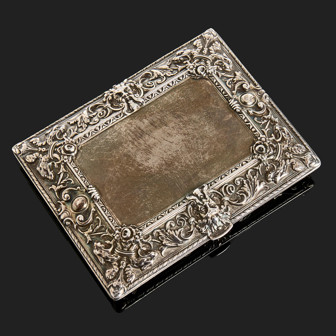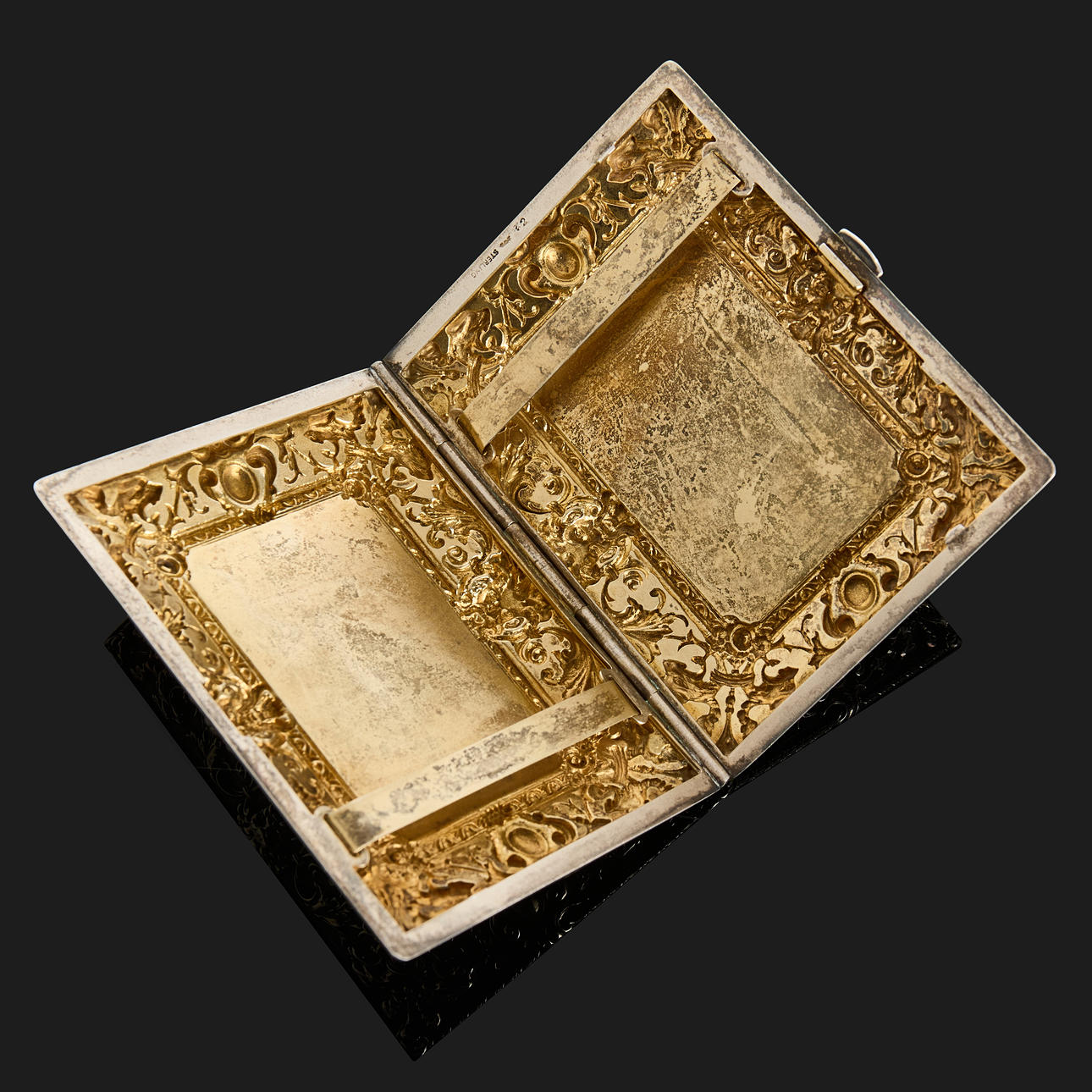 CIGARETTE CASE, sterling silver, embossed decor, gilt inside.