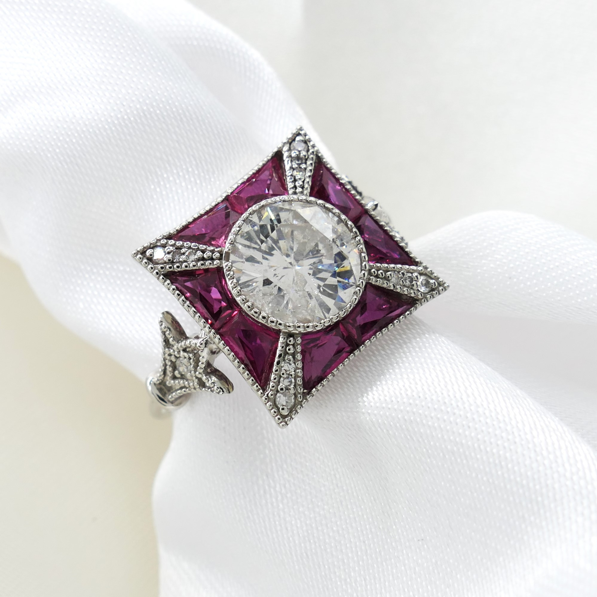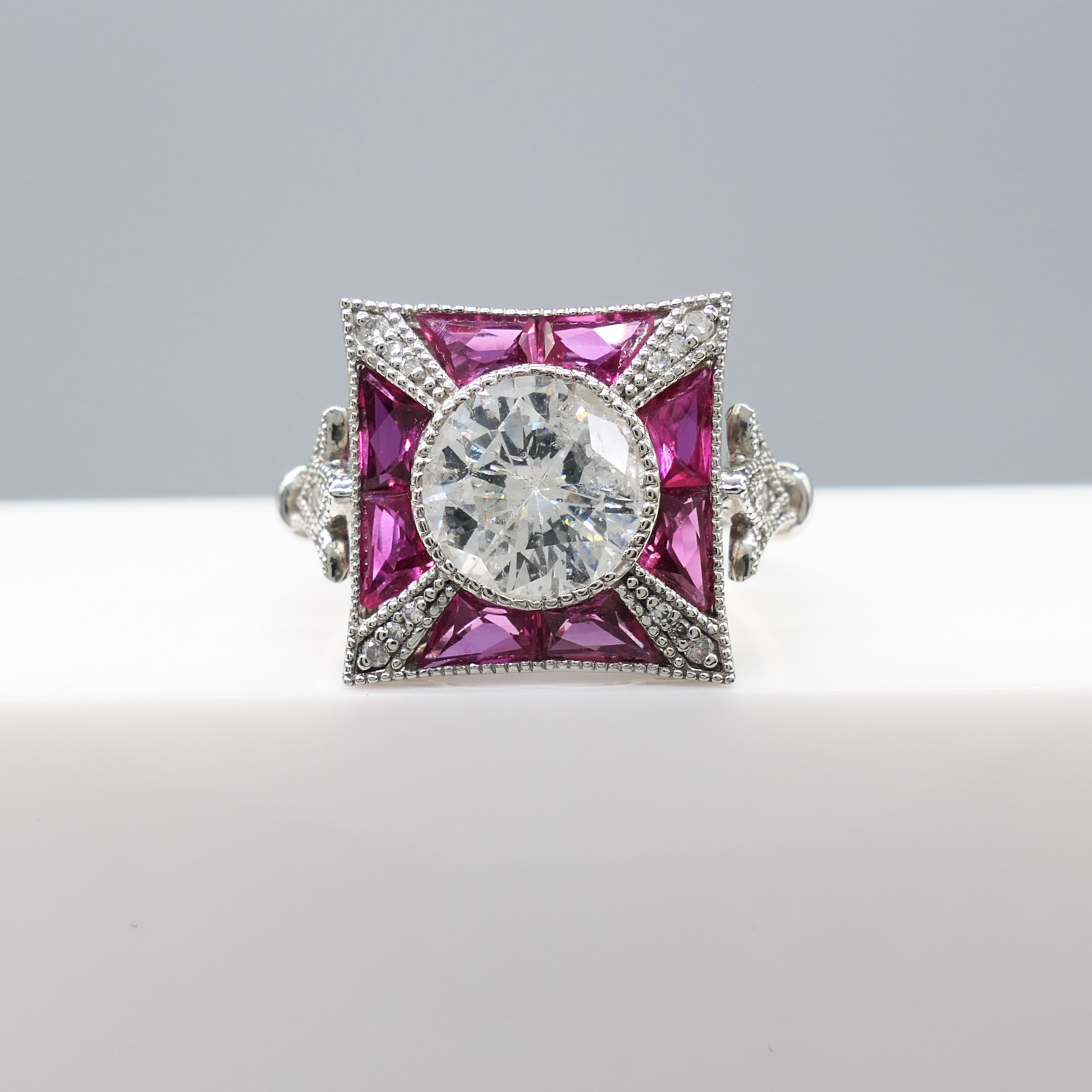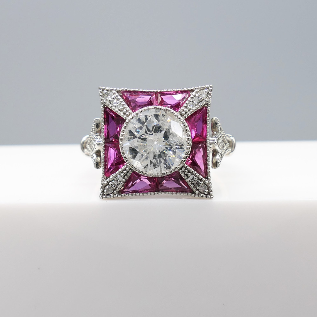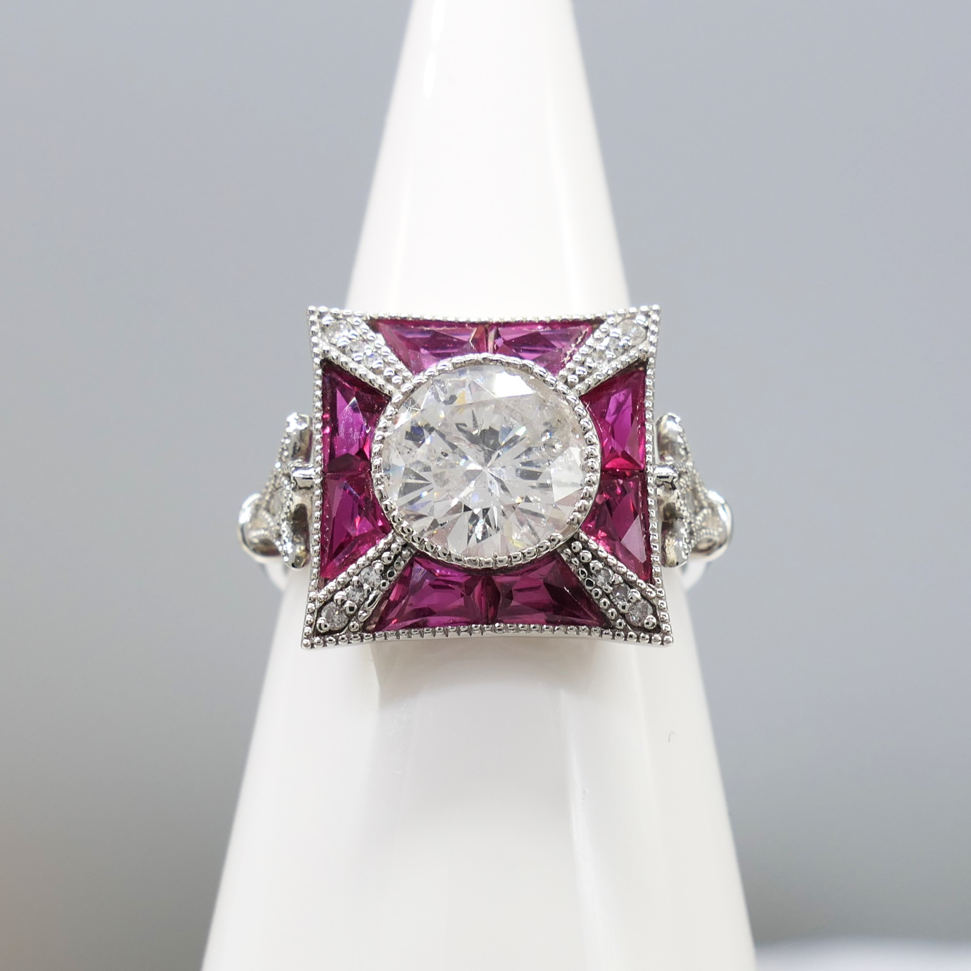 4980162. DIAMOND & RUBY ring, platinum.