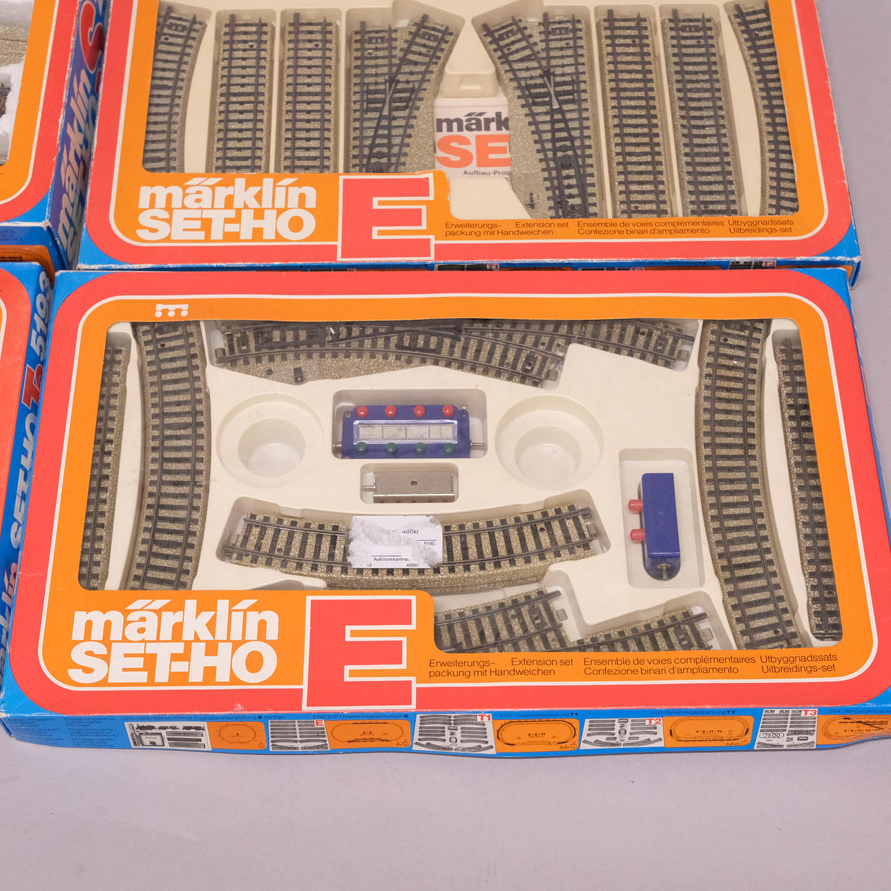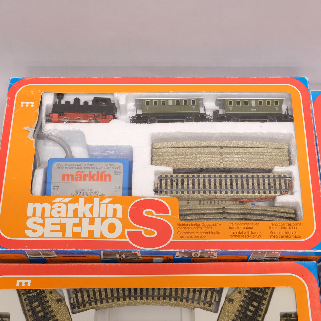 Included; locomotive, two carriages, transformer, various rail parts, etc. Article No.: 2920, 5190 x2, 5191, and 5193.