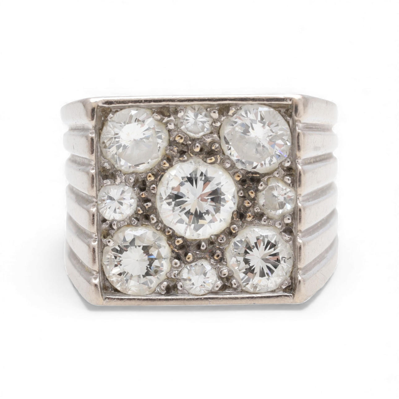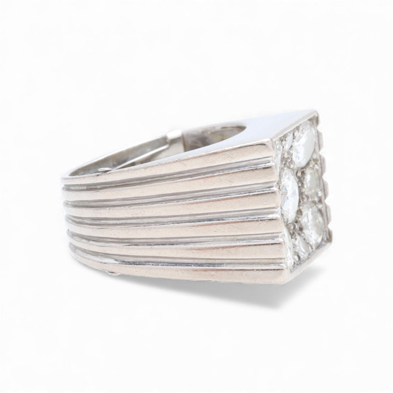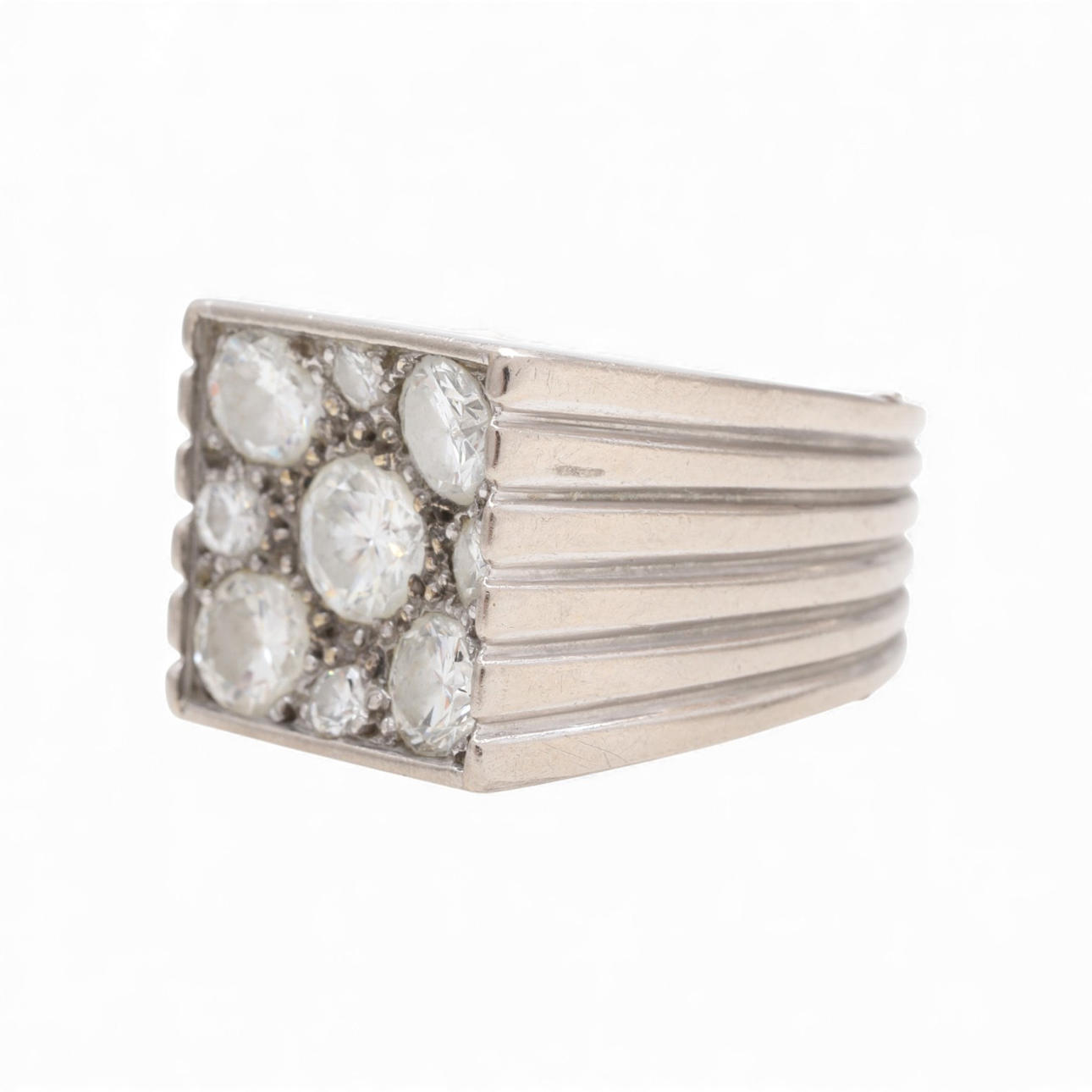 18K white gold and diamonds, approx. 1.74 cts. Size 10/50. 9 gr.
