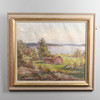 4980438. OIDENTIFIERAD KONSTNÄR. Oil on canvas. “Red cottage”, signed.