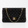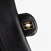 In black matelassé lambskin with gold-tone hardware, interior with a total of 7 compartments, one with a zipper and one lipstick compartment, exterior back pocket.