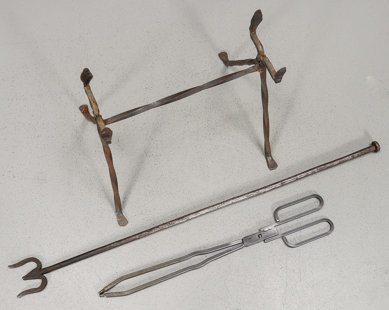 Length fire fork 88 cm, fire pliers 54 cm.
