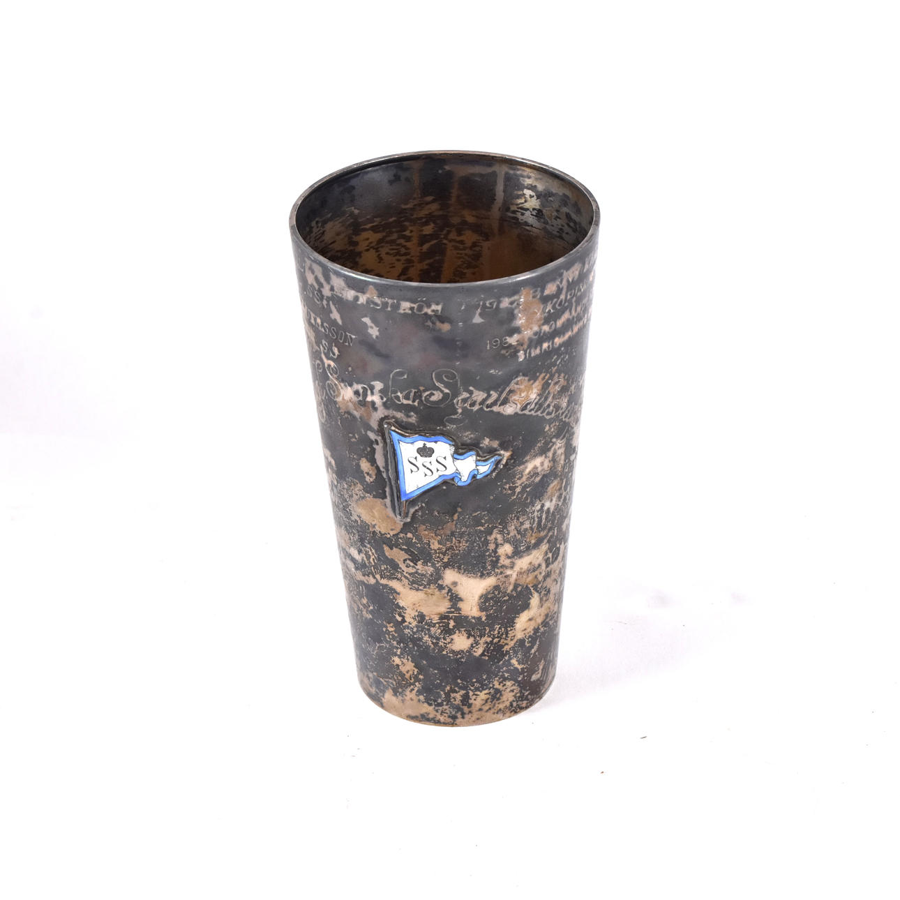 With engraving.