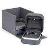 A pair of boxed Messika 18ct gold diamond set earrings. 10.5 x 10.5 x 9 cms.