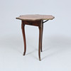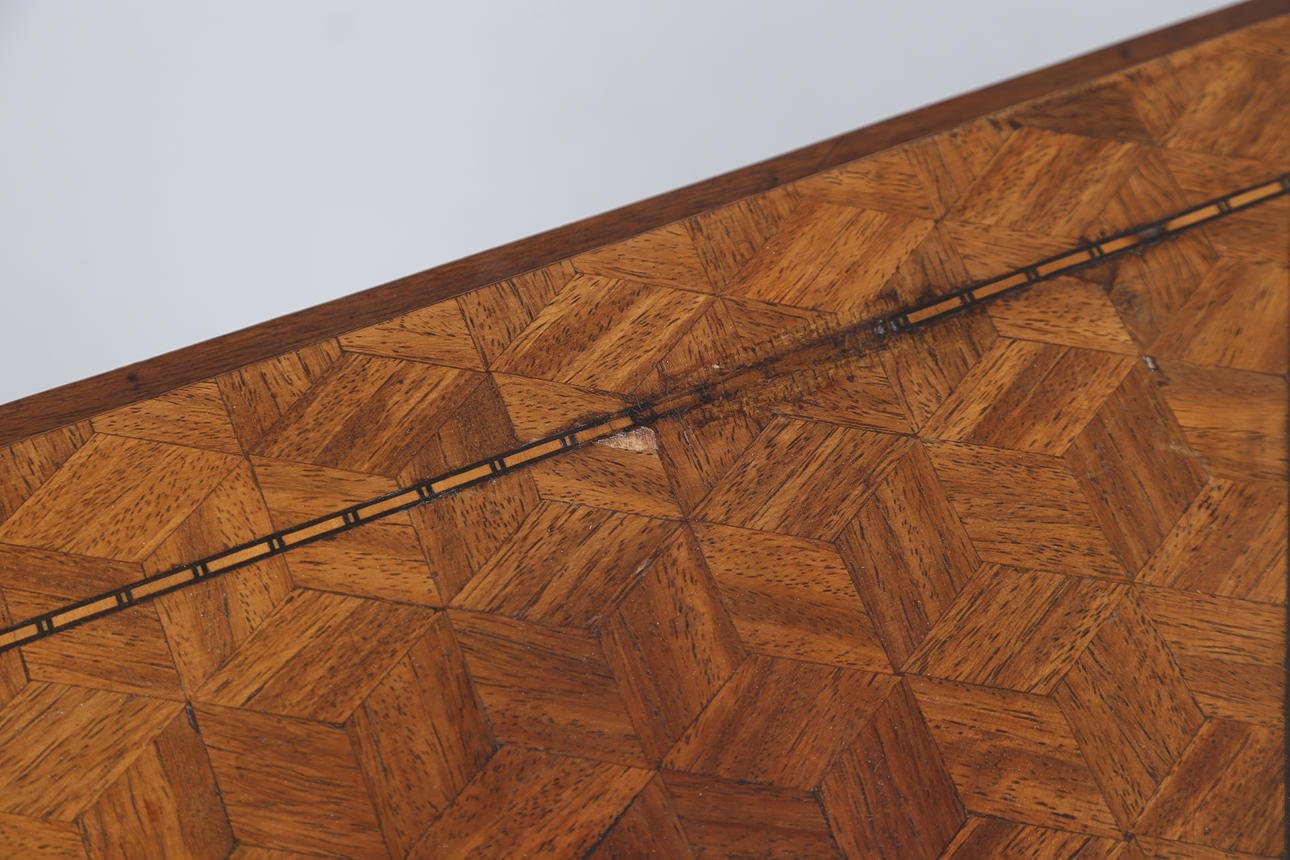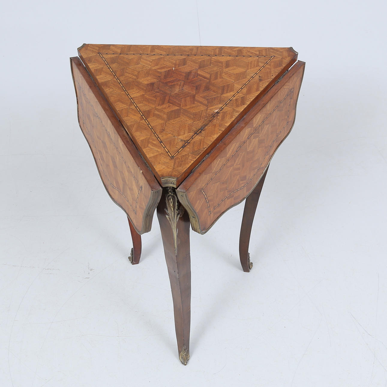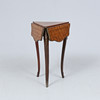 Height approx. 75 cm. Intarsia. Edge made of brass. Diameter unfolded flaps about 70 cm.